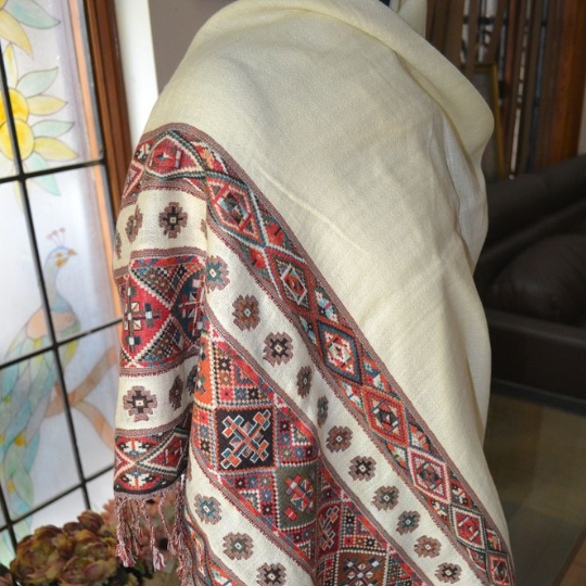 Kullu Shawls - Woolen shawls with intricate geometric patterns and vibrant colors, often featuring traditional motifs. Known for their warmth and durability.