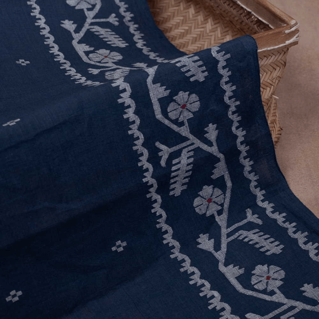 Delicate, ethereal, and steeped in history, this textile is a masterpiece of weaving artistry. Its motifs are not embroidered or printed — they are woven directly into the fabric, making Jamdani textile, one of the most labor-intensive and breathtaking crafts in the world.