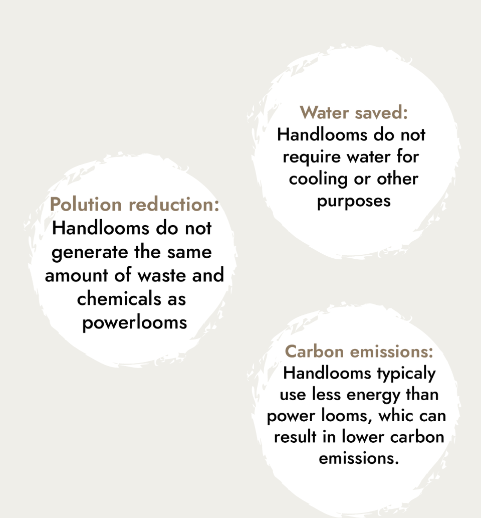 arrow_drop_downBy reducing energy consumption, minimizing carbon emissions, and conserving water, handlooms promote environmentally responsible practices.