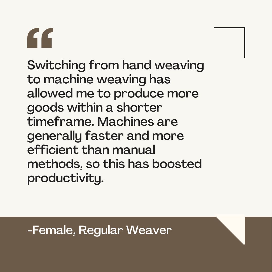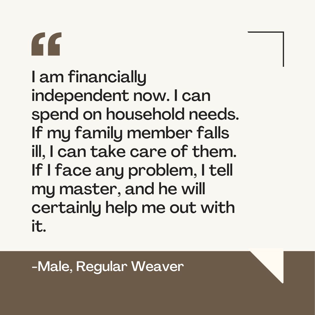 - Improvement in Raw Material Supply: Timely delivery and quality of raw materials are crucial. Both regular and master weavers suggested that improvements in raw materials and yarn quality, alongside an increase in work orders, would greatly enhance their work experience.
