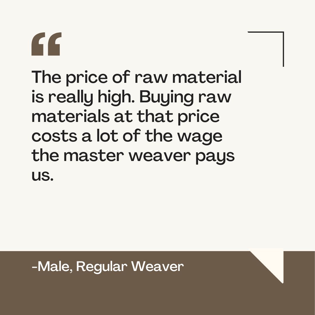 Despite the overall positive impact, some challenges remain like reduced work availability , poor market conditions, such as low wages for intricate designs. Additionally, few weavers pointed out the high cost of raw materials as a significant challenge.