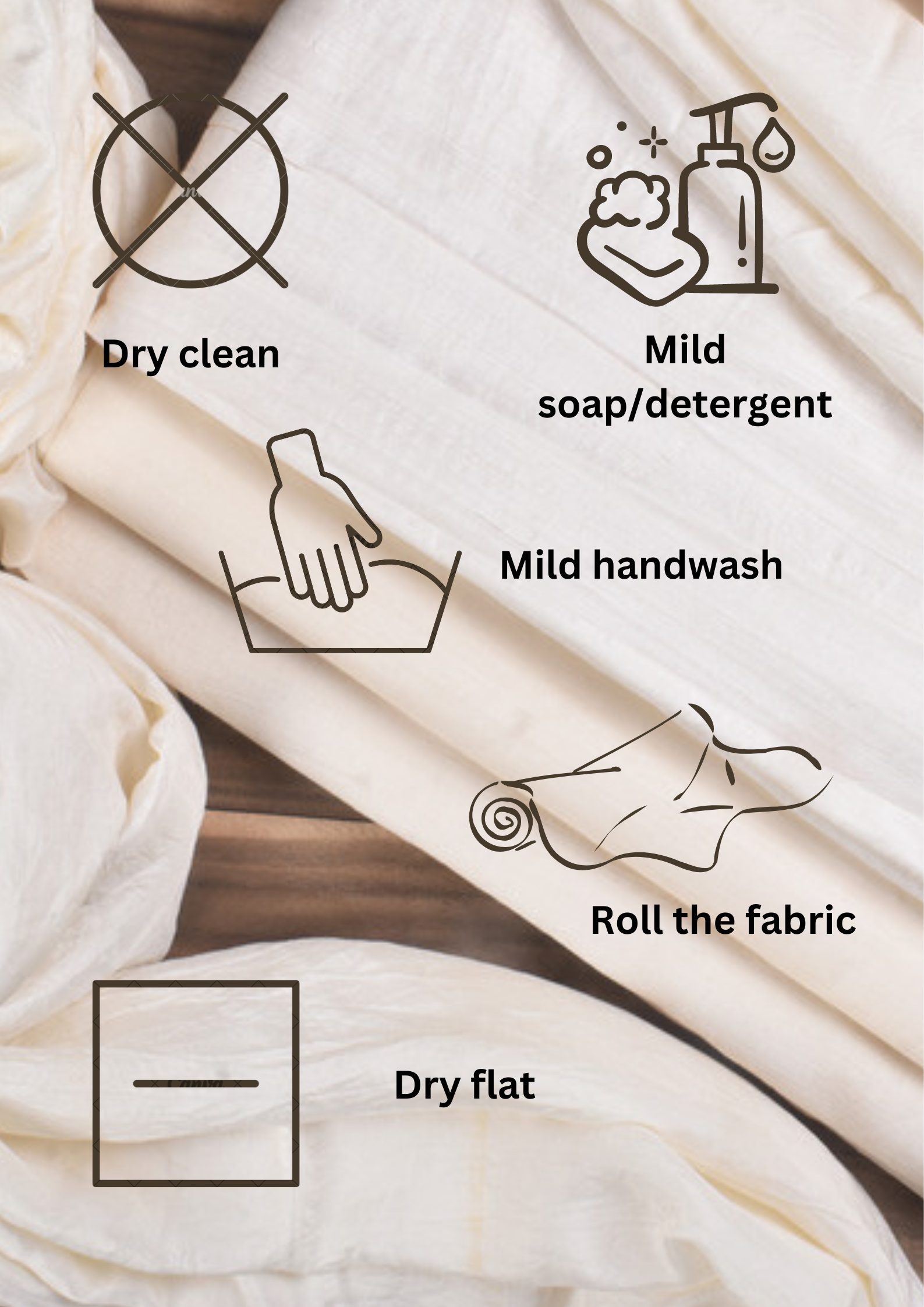 - Do not soak for long—silk weakens when left in water.