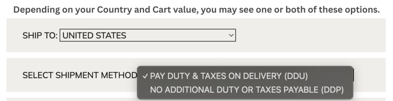 Duty Options at Checkout