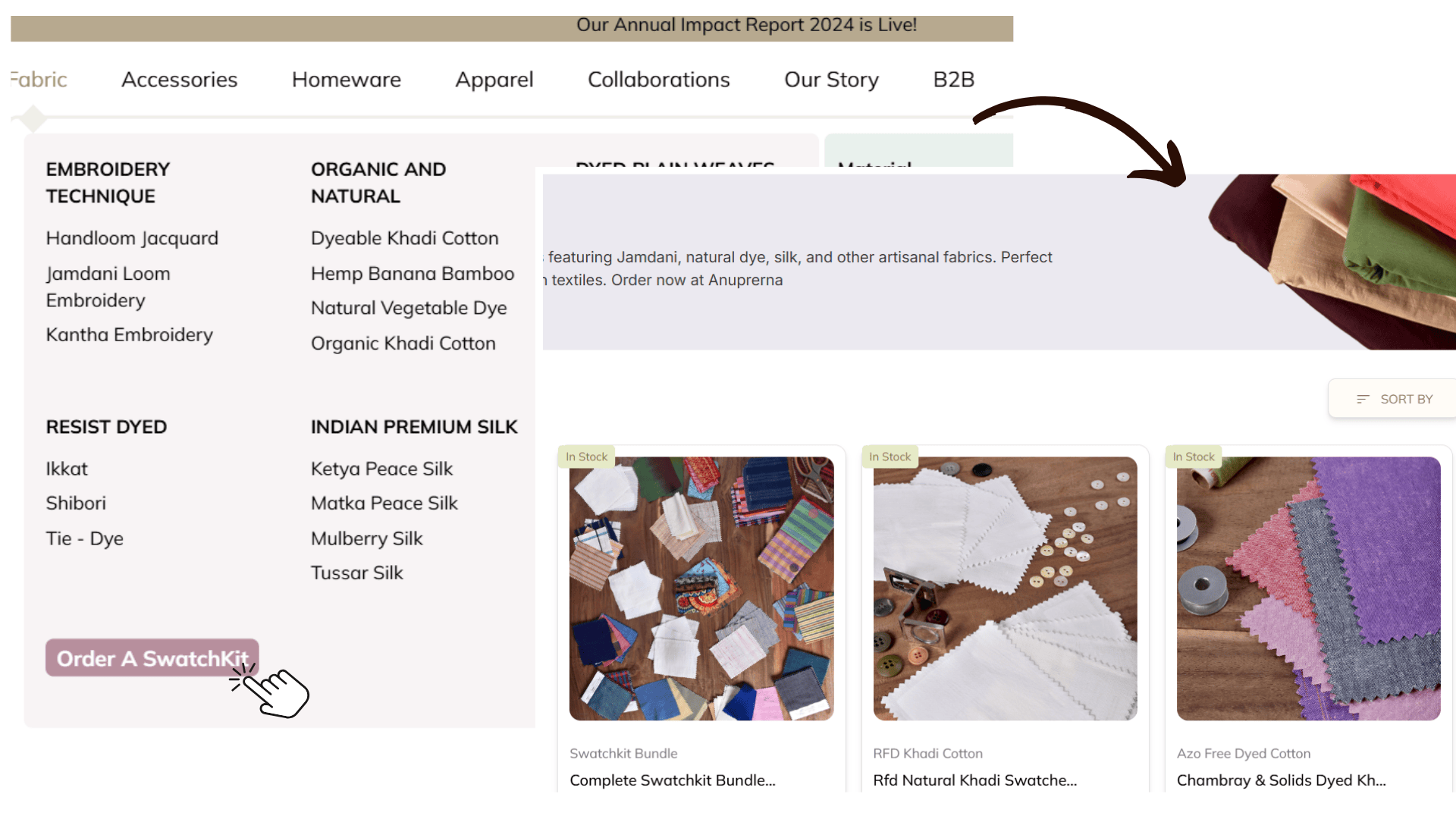 Step 3: Filter by craft choice to find your preferred swatch kit and place your order effortlessly, ensuring complete satisfaction with your fabric choice.