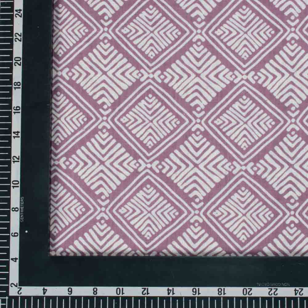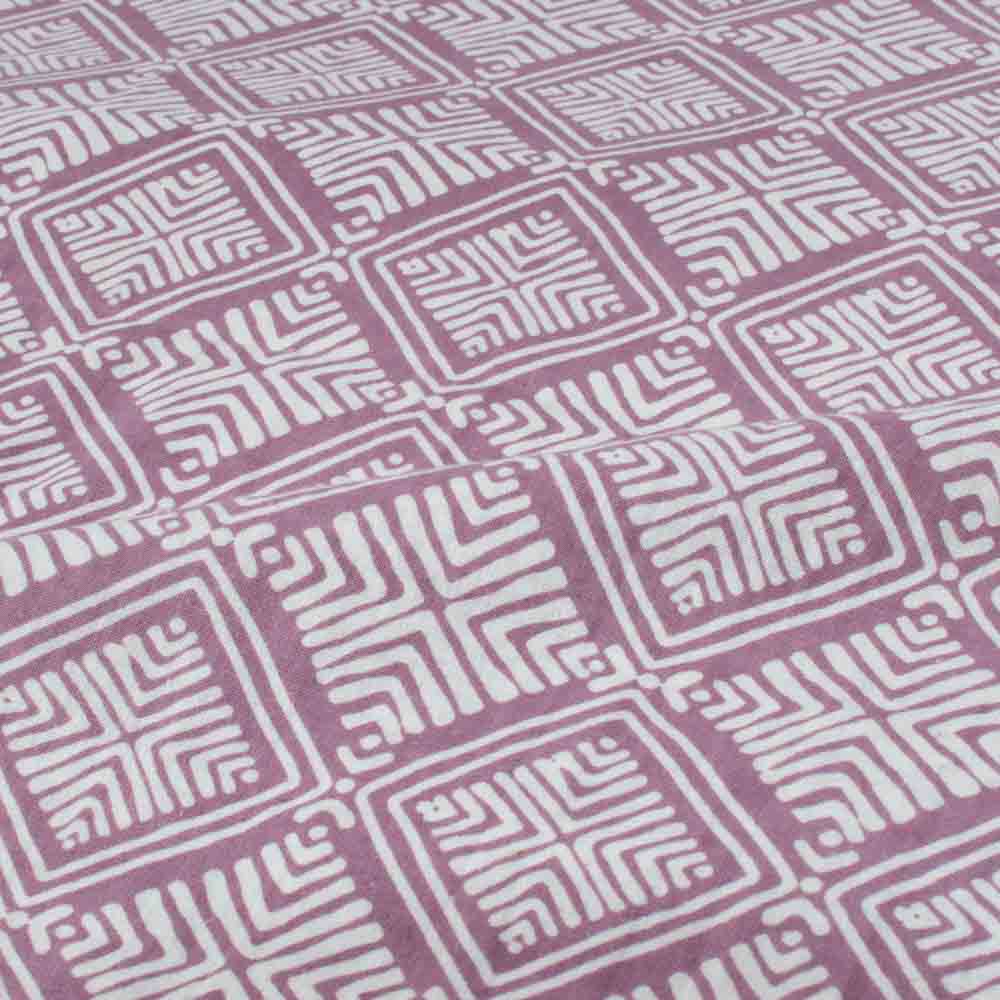 Abstact Purple White Screenprinted Pure Khadi 90 GSM Handwoven Fabric