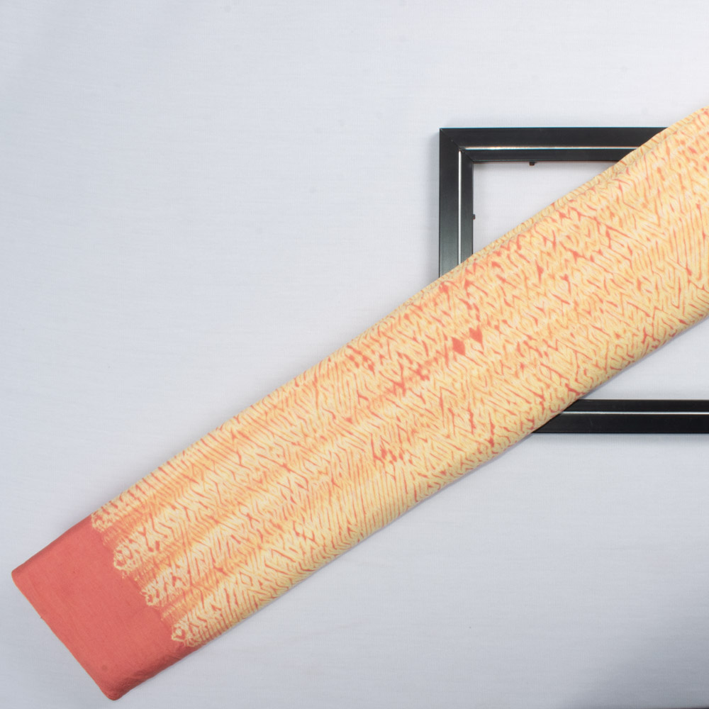 The Abstract Yellow and Orange Shibori 90 GSM Cotton Fabric is a radiant expression of handcrafted elegance, designed for ethical designers and sustainable brands. Made from pure cotton, its abstract Shibori pattern showcases vibrant hues with artistic depth. Soft, breathable, and durable, this lightweight fabric flows beautifully, making it perfect for blouses, dresses, flowy scarves, kidswear, and airy curtains. Its warm tones and organic patterns bring a lively, sunlit charm to any creation.