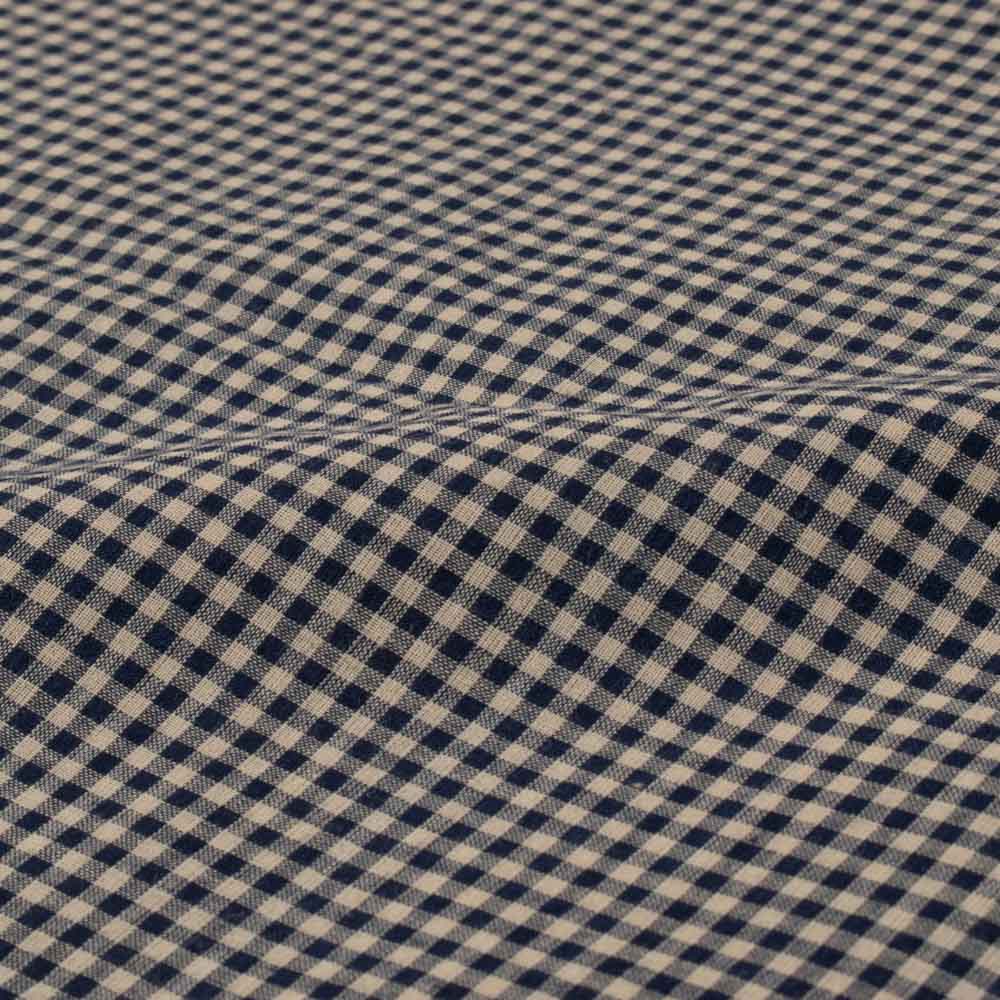 This Beige and Navy Blue Check Pure Cotton 65 GSM Handwoven Fabric combines classic style with feather-light comfort. The fine cotton weave creates a soft, breathable texture ideal for warm and humid climates. Its small gingham checks in beige and blue lend a timeless charm suited for shirts, dresses, tunics, kaftans, blouses, co ords and kidswear. The 65 GSM weight gives it a light, fluid drape that feels effortless for everyday wear and summer-ready designs.