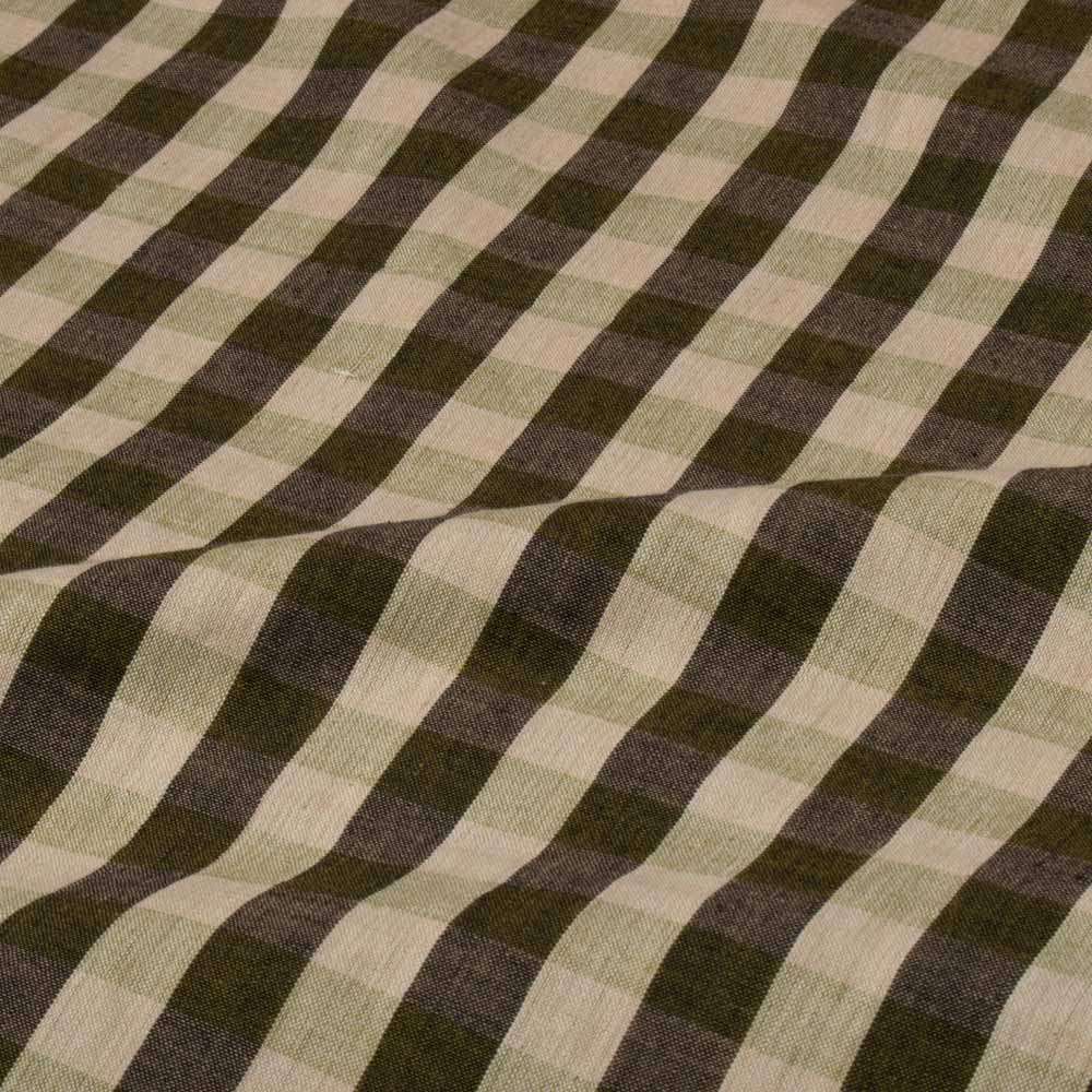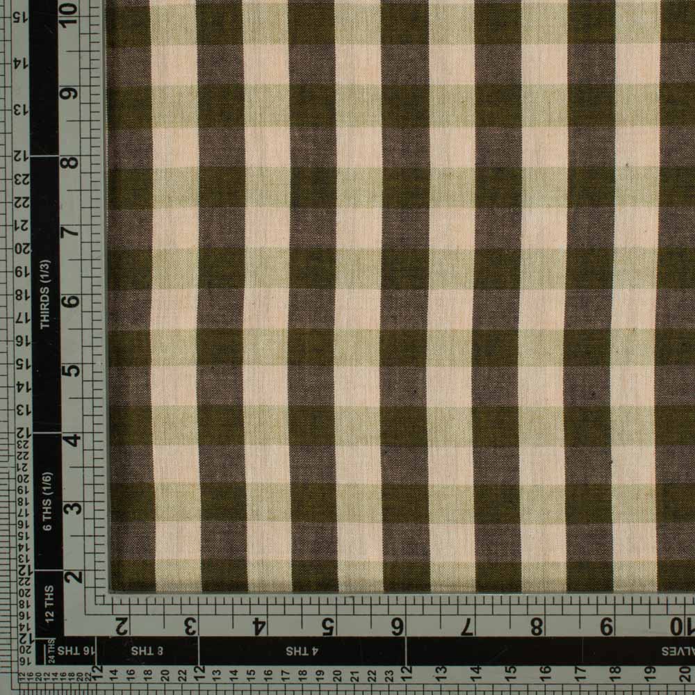 Designed for ethical and sustainable brands, this Check Fabric in Beige Black Olive features a handwoven pure cotton warp and weft. Weighing 100 GSM, it strikes the perfect balance between lightness and structure. The check pattern and soft, breathable, and durable finish make it ideal for versatile creations like everyday wear, accessories, and home textiles rooted in conscious craftsmanship.