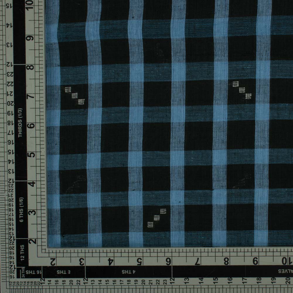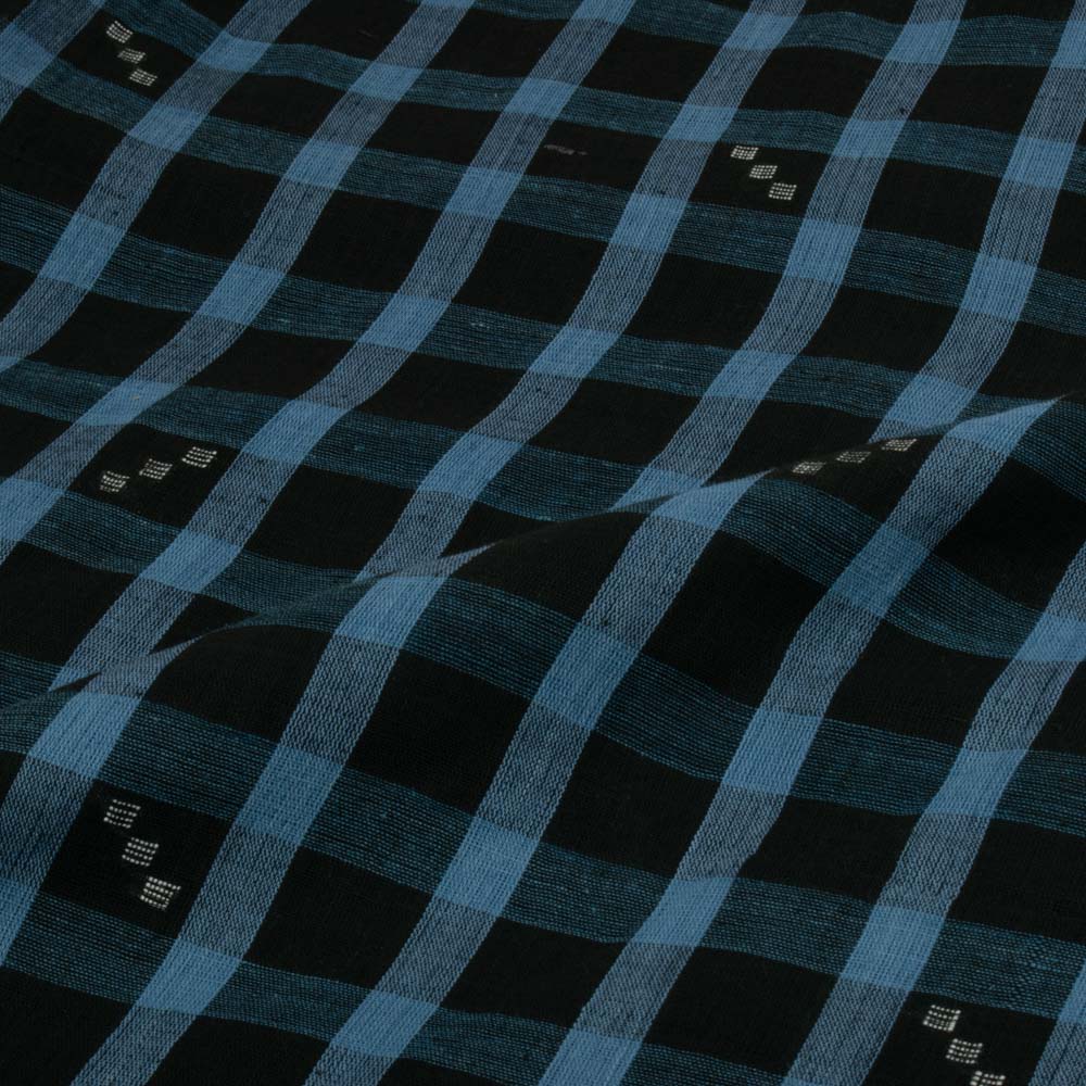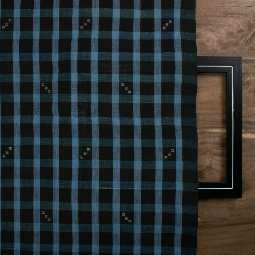 Crafted for ethical and sustainable designers, this Black & Blue Jamdani Fabric features handwoven cotton warp and weft in a classic check pattern enriched with intricate Jamdani weaving. With a medium weight of 100 GSM, it offers a soft, breathable, and durable feel. This elegant Jamdani Fabric is perfect for dresses, blouses, scarves, or light home décor, celebrating timeless craftsmanship and versatile design.