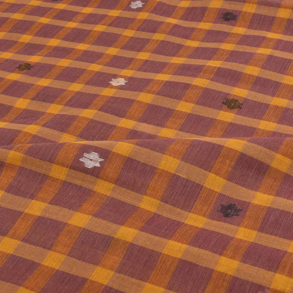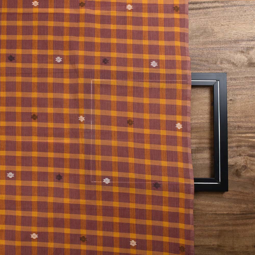 Presenting our Check Brown Yellow Jamdani Pure Cotton 60 GSM Handwoven Fabric, a masterpiece for ethical designers. This lightweight check fabric, woven with a cotton warp and weft, features a harmonious blend of brown and yellow tones. Its soft, breathable, and durable finish makes it perfect for crafting lightweight curtains, blouses, dresses, flowy scarves, and kidswear. With its elegant Jamdani craftsmanship, this fabric offers versatility and sophistication, elevating your sustainable fashion and home decor projects.