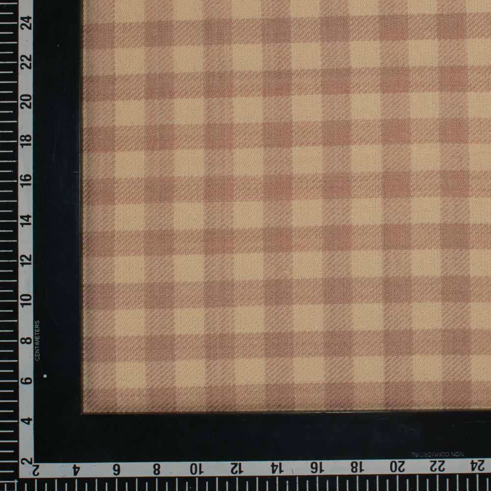This exquisite Check Cream Brown Pure Wool fabric, weighing 220 GSM, embodies timeless elegance and durability. Crafted for ethical and sustainable designers, it features a classic cream and brown check pattern. The warp and weft, both made of pure wool, ensure a soft yet breathable texture. Perfect for jackets, tableware, bags, and home furnishings, this heavy-weight fabric combines warmth with sophistication, making it ideal for versatile, high-quality creations. A must-have for designers seeking luxury and sustainability.