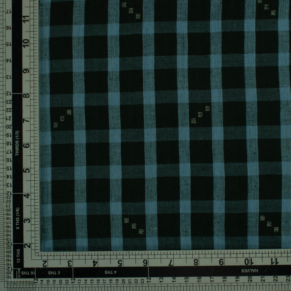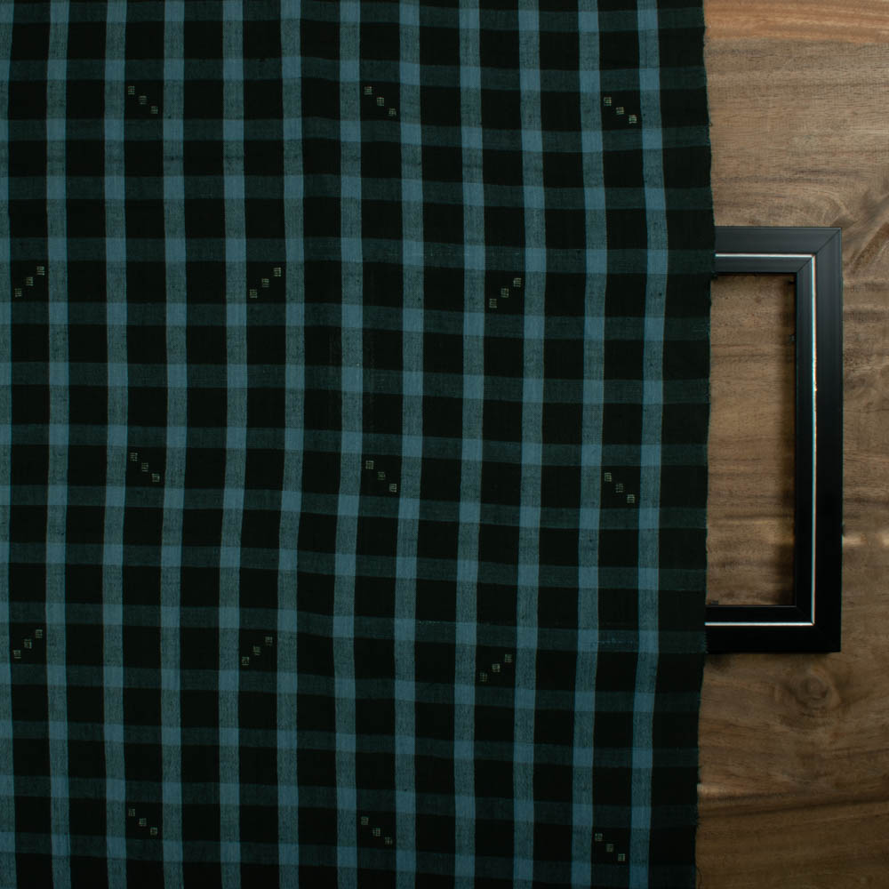 Designed for ethical and sustainable brands, this Green Black Jamdani Fabric showcases handwoven cotton warp and weft in a refined check pattern with delicate Jamdani detailing. Weighing 100 GSM, it offers a soft, breathable, and durable finish. This Jamdani Fabric is ideal for blouses, dresses, lightweight outerwear, and home accents, blending artisanal elegance with everyday versatility.