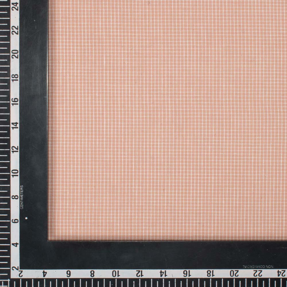 This 93 GSM handwoven fabric is made from 100% natural khadi cotton and features a soft peach check pattern. The lightweight weave is breathable and smooth to the touch, making it suitable for warm and humid weather. Woven entirely by hand, it offers a soft drape while maintaining enough durability for everyday use. Free from synthetic blends or chemical finishes, it is eco-friendly, hypoallergenic, and biodegradable.