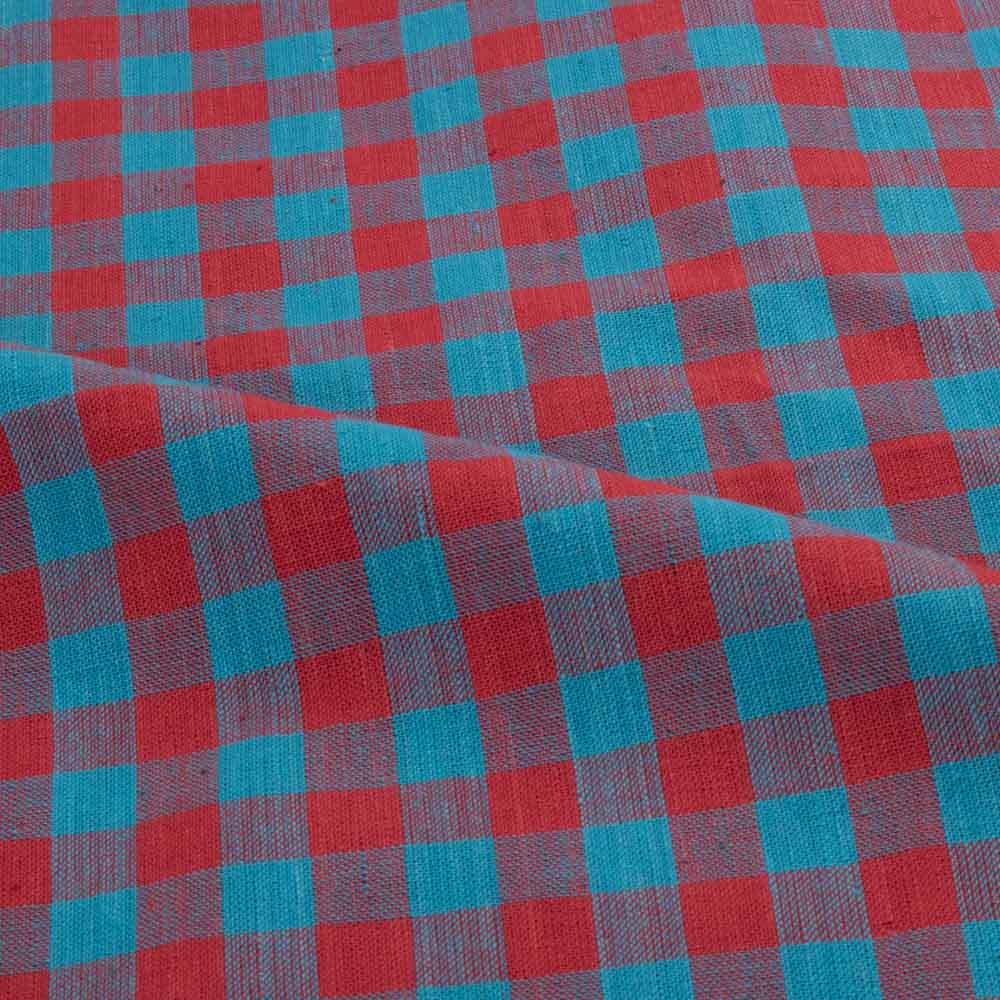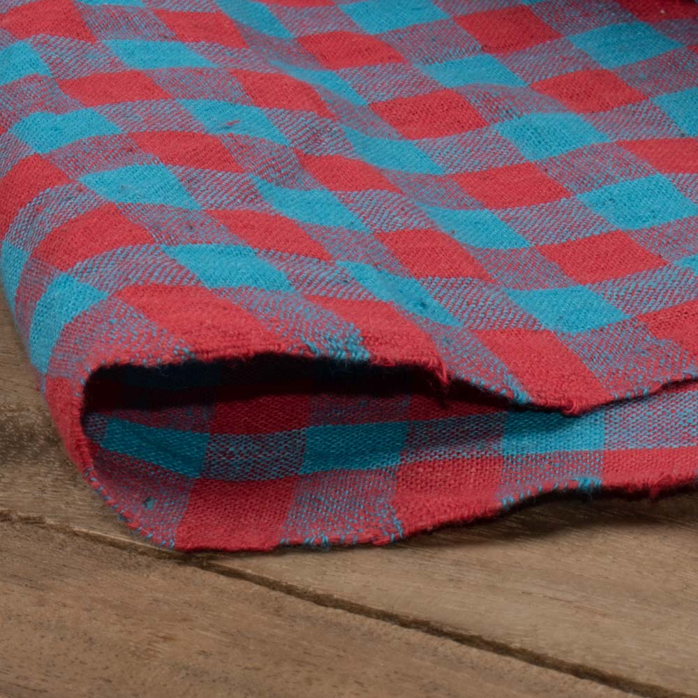 The Check Red Turquoise Pure Khadi 145 GSM Handwoven Fabric is a celebration of artisanal craftsmanship, designed for ethical designers and sustainable brands. Crafted from pure khadi, it offers a soft, breathable, and durable texture with a medium-weight drape. The vibrant red and turquoise check pattern adds a bold yet timeless appeal, making it perfect for shirts, dresses, blouses, kidswear, and lightweight upholstery. A versatile fabric for conscious, stylish creations.
