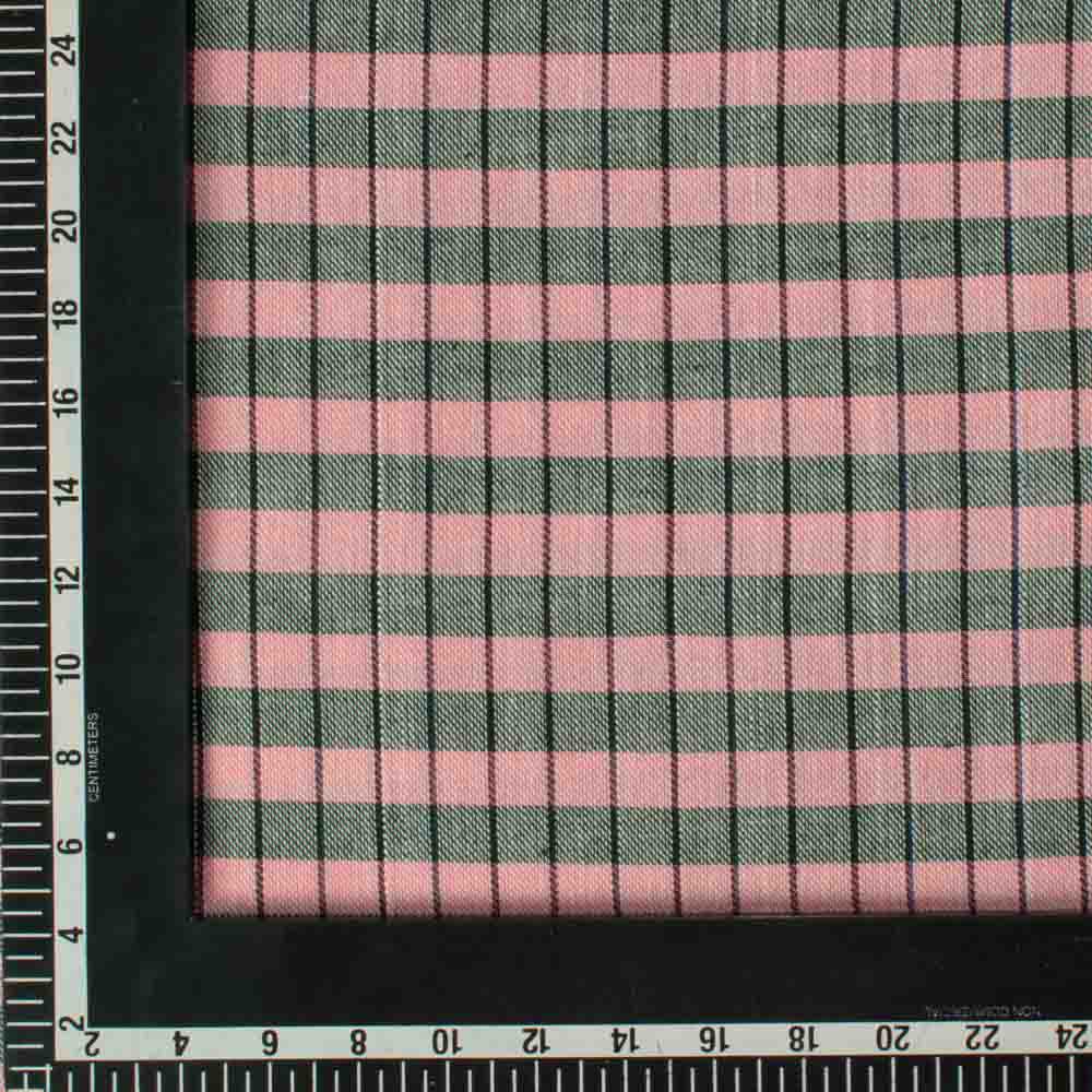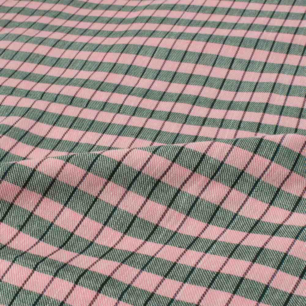 Designed for ethical and sustainable brands, this Check Twill Pink Green Pure Cotton fabric is a refined example of traditional handweaving. Made from 100 GSM cotton, it offers a soft, breathable, and durable finish, perfect for a variety of uses. The striking pink and green check pattern adds vibrancy and style, making it ideal for blouses, dresses, lightweight outerwear, and accessories. With its medium weight and jacquard texture, this fabric embodies both versatility and high-quality craftsmanship.