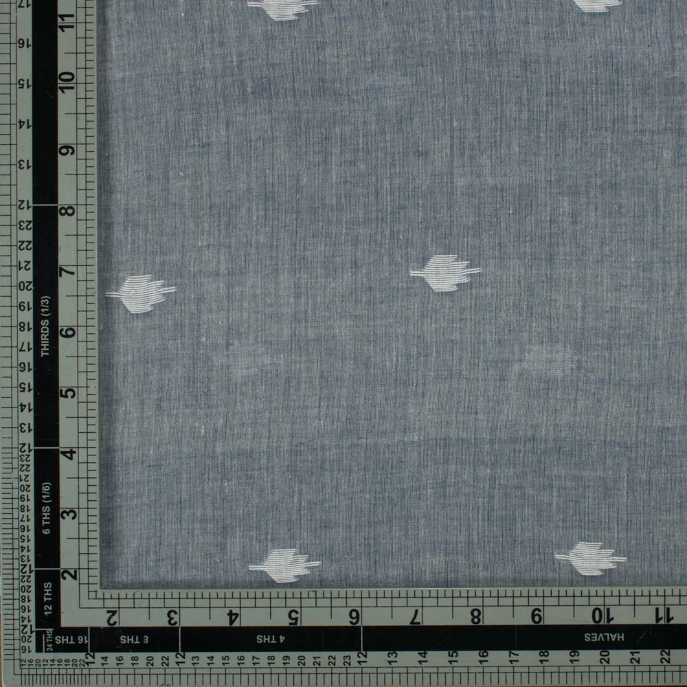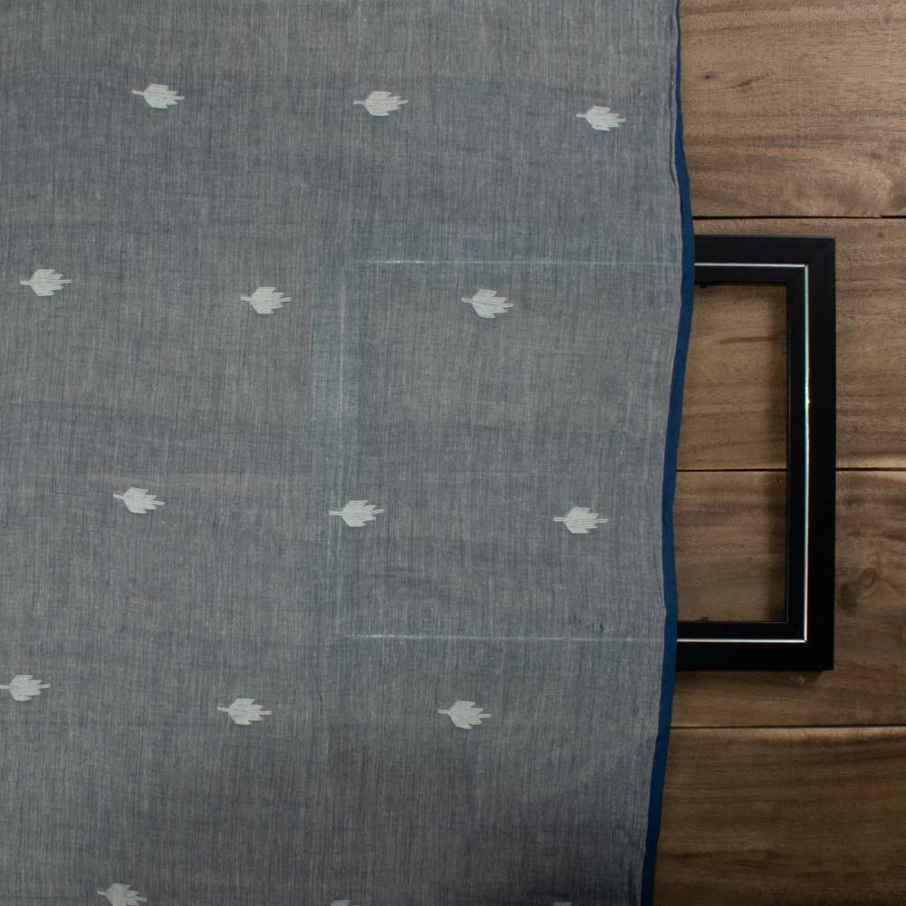Designed for ethical and sustainable designers, this Jamdani Fabric in bluish grey features delicate floral motifs handwoven in pure cotton warp and weft. Weighing just 55 GSM, it offers a soft, breathable, and durable feel. Its lightweight nature and refined pattern make it ideal for lightweight curtains, blouses, dresses, flowy scarves, and kidswear, celebrating craftsmanship with understated elegance.