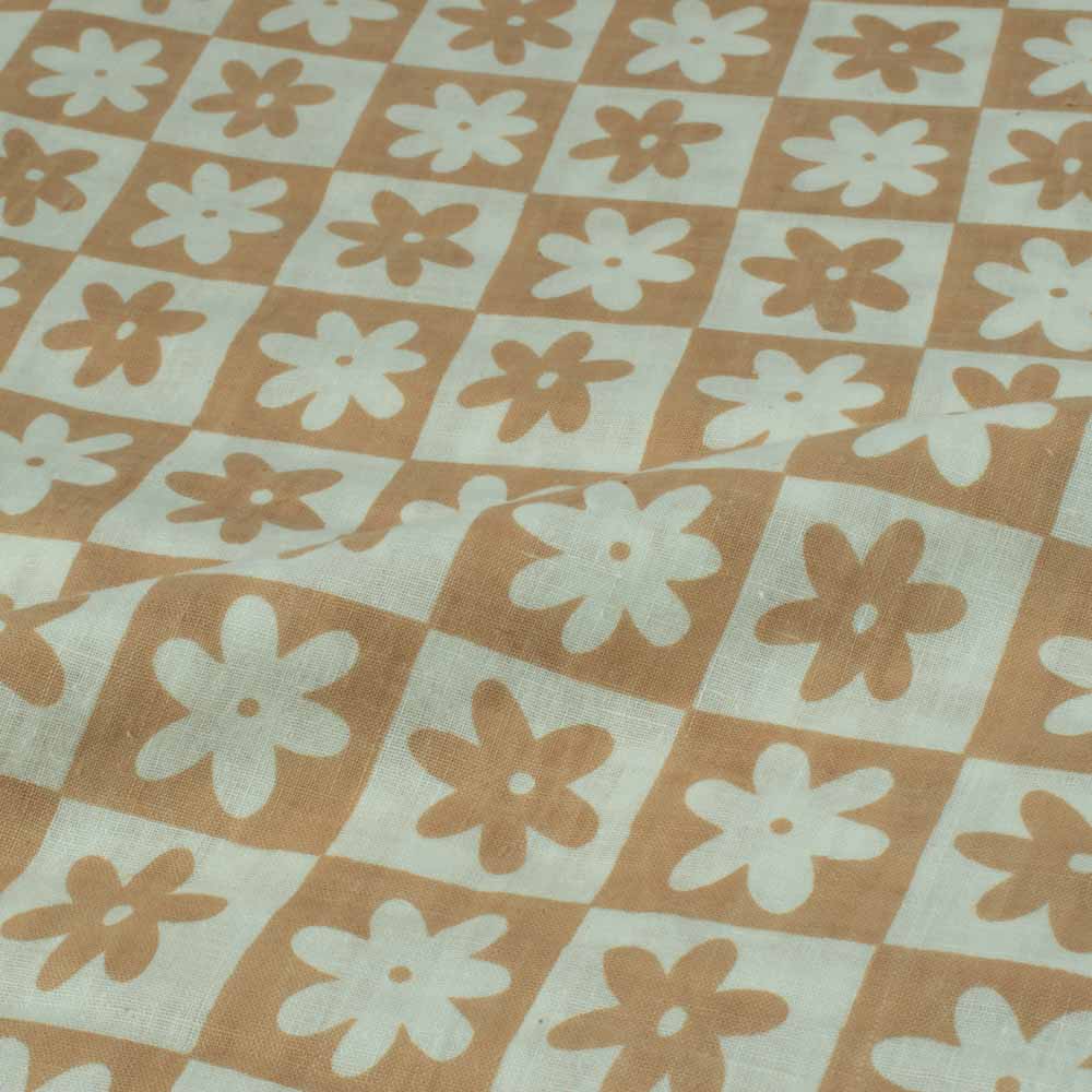Designed for ethical and sustainable designers and brands, this Floral Brown and White Screenprinted Pure Khadi fabric exudes elegance and craftsmanship. Handwoven with a light 90 GSM weight, it features a delicate floral pattern in earthy brown and white tones. The fabric’s soft, breathable, and durable qualities make it perfect for crafting lightweight curtains, blouses, dresses, flowy scarves, and kidswear. Its versatile and timeless appeal ensures it complements a wide range of eco-friendly fashion and home décor projects.