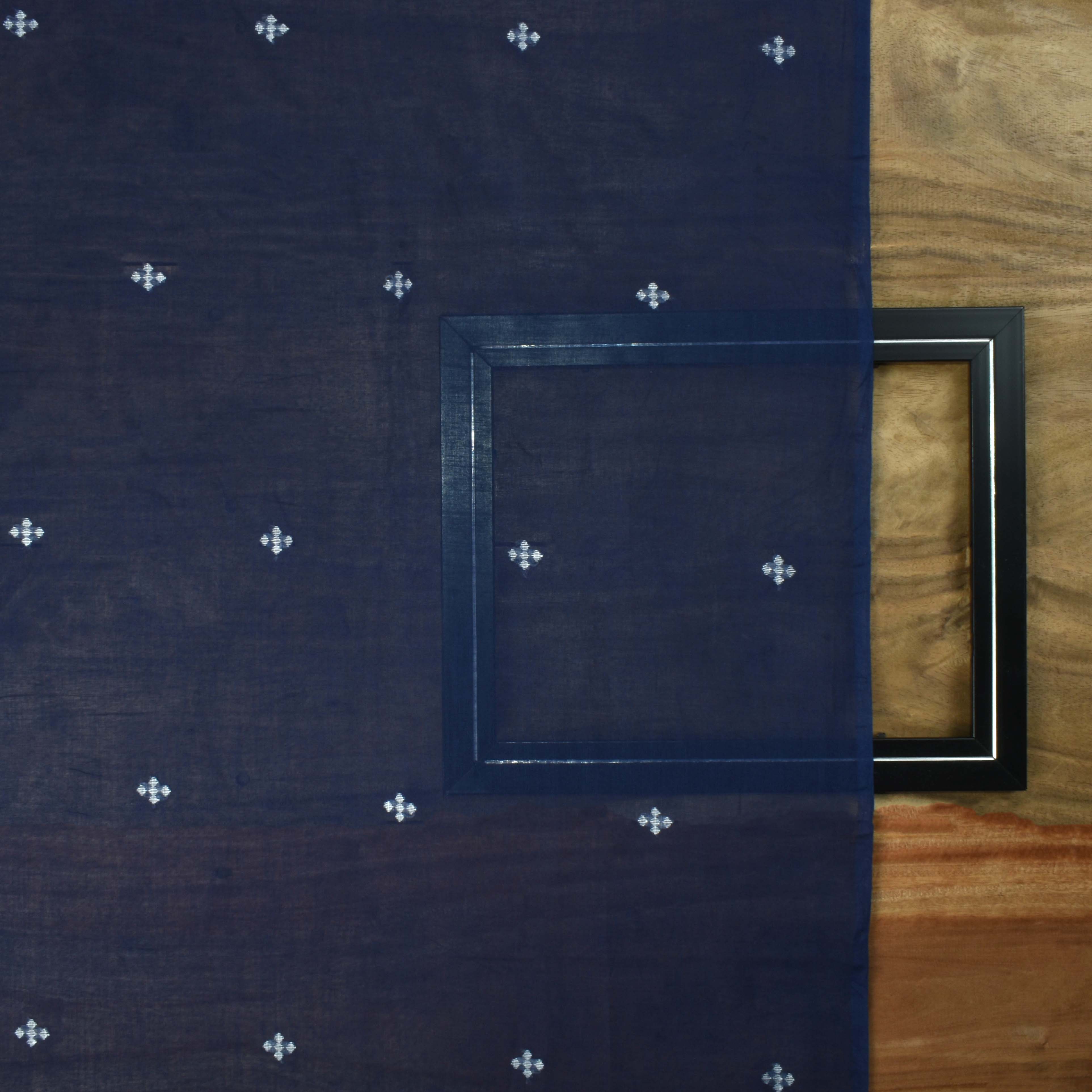 Designed for ethical and sustainable designers, this Geometric Blue Jamdani Fabric is a handwoven expression of craft in pure cotton, with a fine cotton warp and weft. At just 50 GSM, it is exceptionally lightweight, soft, breathable, and durable. Its intricate geometric motifs and delicate texture make it perfect for flowy scarves, blouses, dresses, kidswear, or lightweight curtains, offering an elegant balance of tradition and versatility.