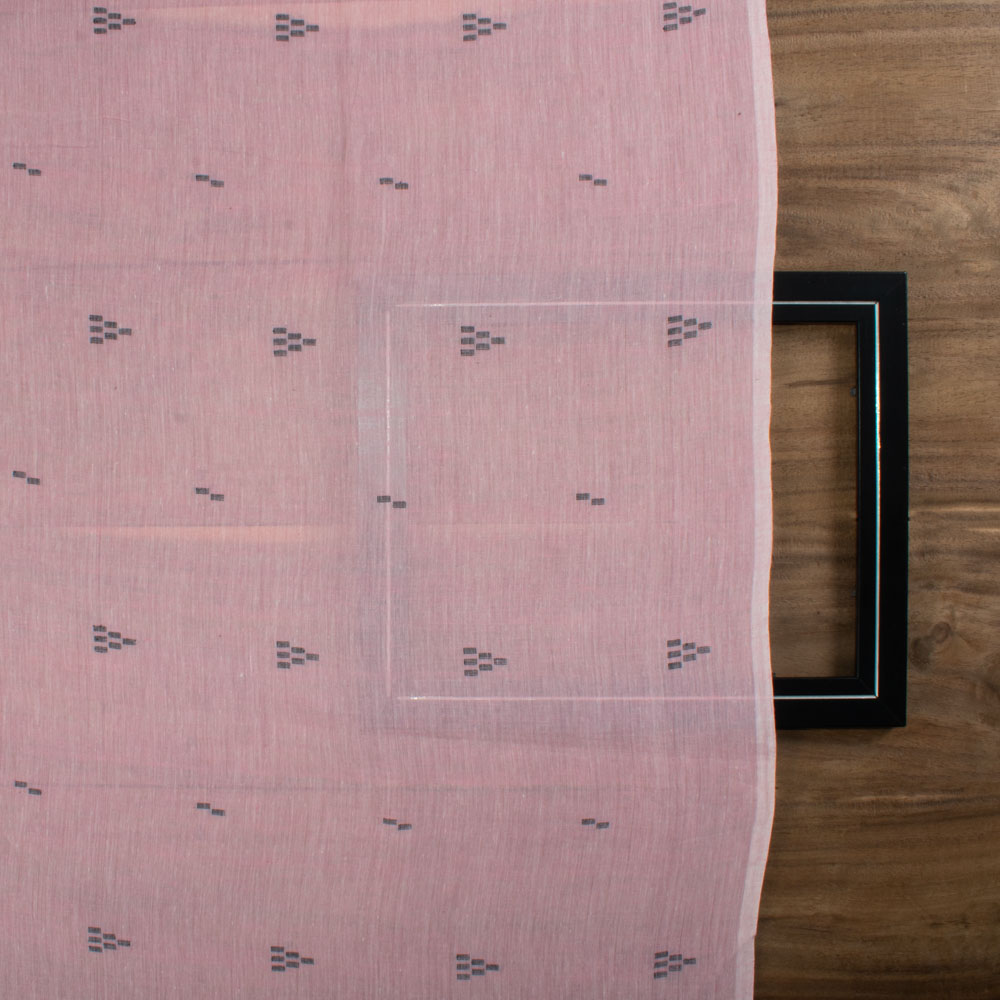 Elevate your ethical and sustainable designs with our Jamdani Pure Cotton 55 GSM Handwoven Fabric. Crafted for discerning creators, this Light-weight fabric boasts a timeless twill check pattern, meticulously woven on a Jacquard loom. The warp and weft, both made of pure cotton, ensure a soft, breathable, and durable finish that exudes quality. The rich Pink hue adds a touch of sophistication to your creations, whether it's skirts, shirts, casual pants, or curtains. Its 55 GSM weight makes it suitable for a wide range of stylish end uses, ensuring your designs stand out in both form and function.