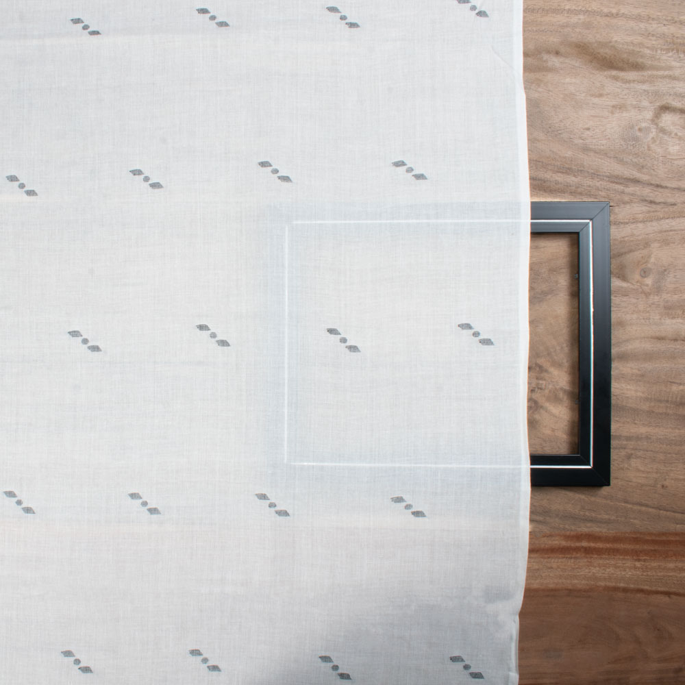 Elevate your ethical and sustainable designs with our Jamdani Pure Cotton 55 GSM Handwoven Fabric. Crafted for discerning creators, this Light-weight fabric boasts a timeless twill check pattern, meticulously woven on a Jacquard loom. The warp and weft, both made of pure cotton, ensure a soft, breathable, and durable finish that exudes quality. The rich White hue adds a touch of sophistication to your creations, whether it's skirts, shirts, casual pants, or curtains. Its 55 GSM weight makes it suitable for a wide range of stylish end uses, ensuring your designs stand out in both form and function.