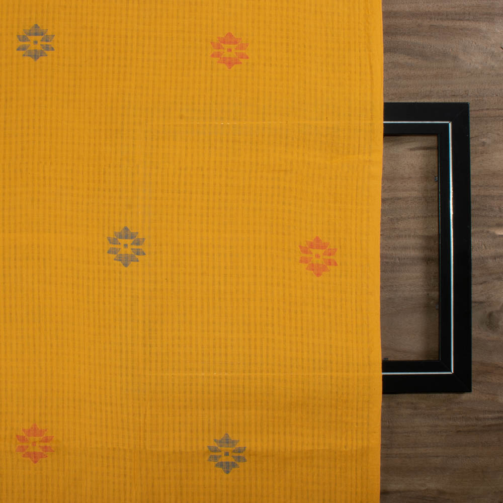 Elevate your ethical and sustainable designs with our Jamdani Pure Cotton 60 GSM Handwoven Fabric. Crafted for discerning creators, this Light-weight fabric boasts a timeless twill check pattern, meticulously woven on a Jacquard loom. The warp and weft, both made of pure cotton, ensure a soft, breathable, and durable finish that exudes quality. The rich Yellow hue adds a touch of sophistication to your creations, whether it's skirts, shirts, casual pants, or curtains. Its 60 GSM weight makes it suitable for a wide range of stylish end uses, ensuring your designs stand out in both form and function.