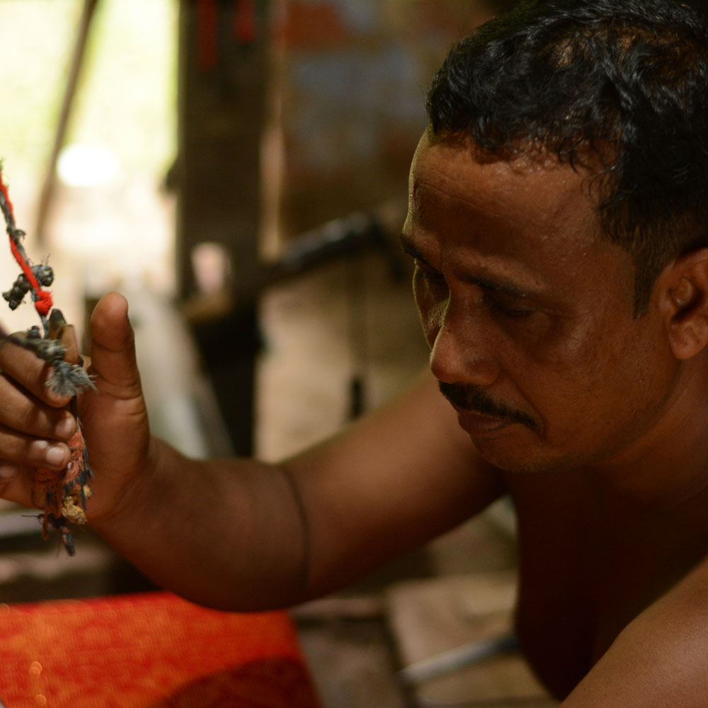 It's a beautiful hand woven cotton fabric. The fabric is of 136 gsm, light weight and has a beautiful, soft, elegant texture. The fabric drapes really well.