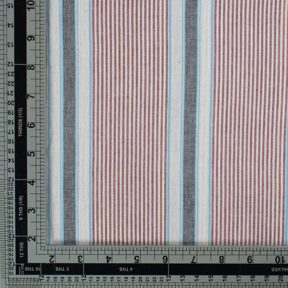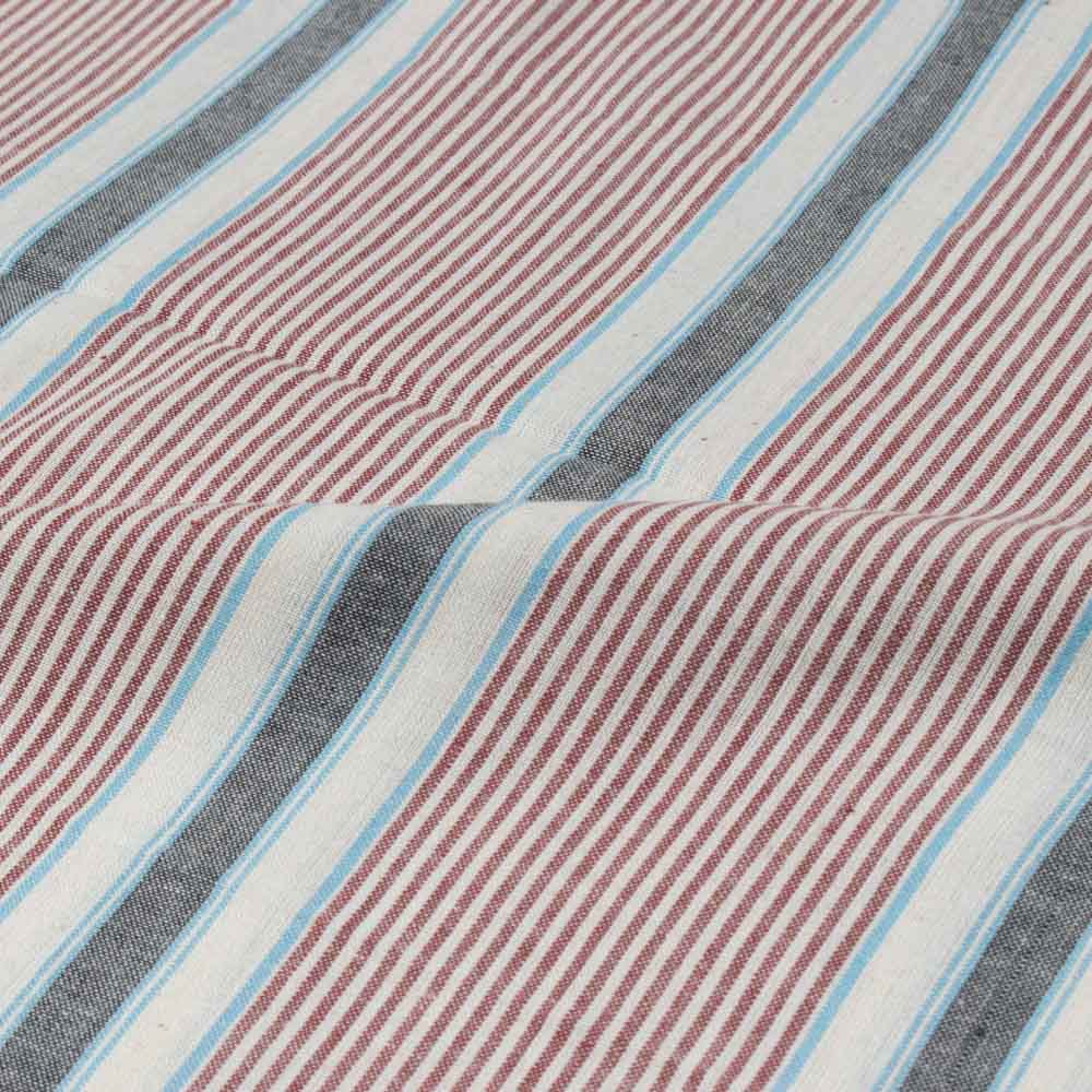 This Multicolour Stripe Pure Cotton 90 GSM Handwoven Fabric combines clean pinstripes with wider accent stripes for a refined yet playful look. The off white base is broken by red, blue and grey stripes, creating a lengthening effect that works well on most silhouettes. At 90 GSM, the fabric feels light, breathable and soft on the skin, ideal for warm weather shirts, kurtas, tunics, dresses, co ord sets and kidswear.
