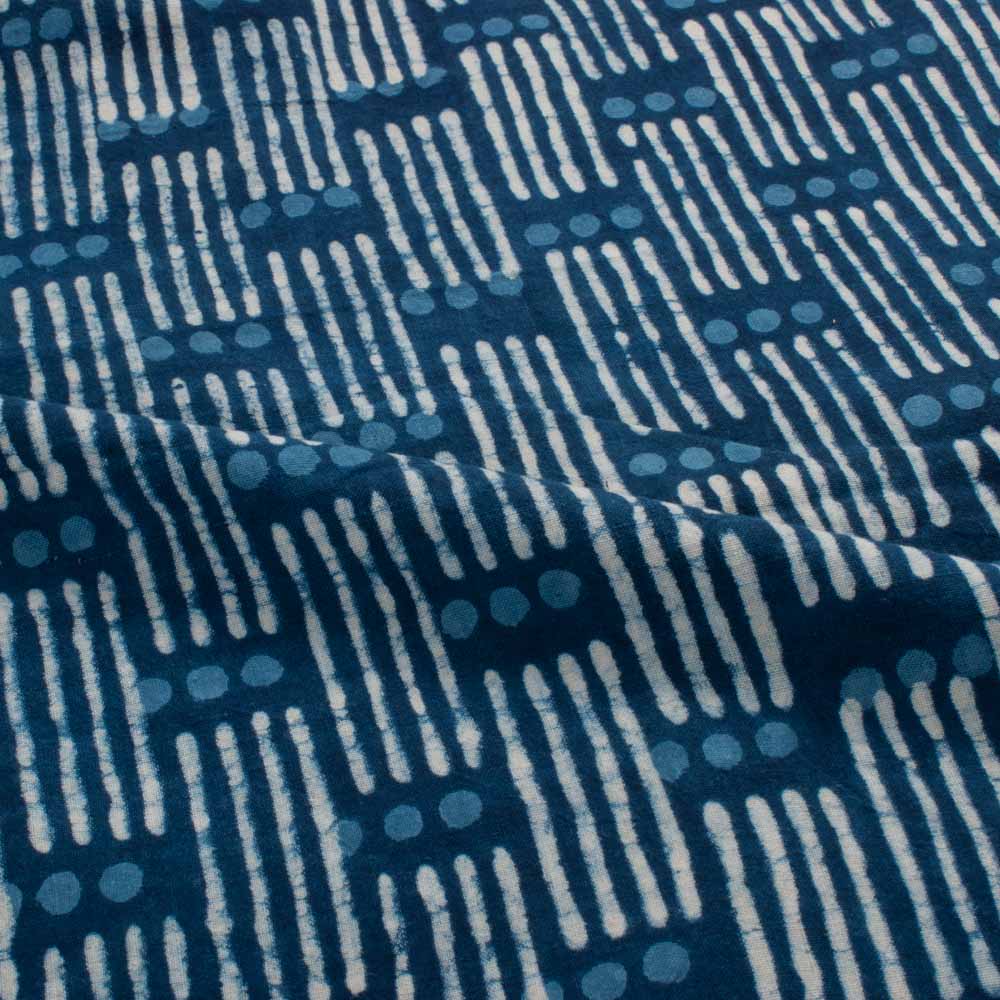 The Natural Indigo Dye Blue Block Print Fabric 128 GSM Khadi Fabric offers a perfect blend of sustainability and artistry. Handwoven with khadi warp and weft, this medium-weight fabric showcases an intricate abstract block print in a deep, rich blue shade, dyed naturally using indigo plant extracts. Its soft, breathable, and durable finish makes it ideal for crafting stylish, eco-friendly garments and home textiles.