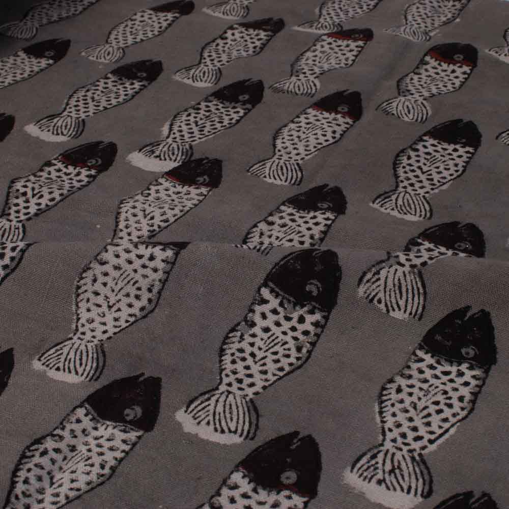 Introducing the Natural Iron Rust vibrant grey block printed organic khadi fabric, thoughtfully handwoven with 174 GSM weight. Ideal for ethical and sustainable designers and brands, this fabric features organic khadi in both warp and weft, offering a medium-weight finish that's soft, breathable, and durable. The abstract pattern adds a sophisticated touch, making it perfect for diverse uses like blouses, dresses, and home décor. Embrace a refined, eco-friendly choice that effortlessly blends style with sustainability.
