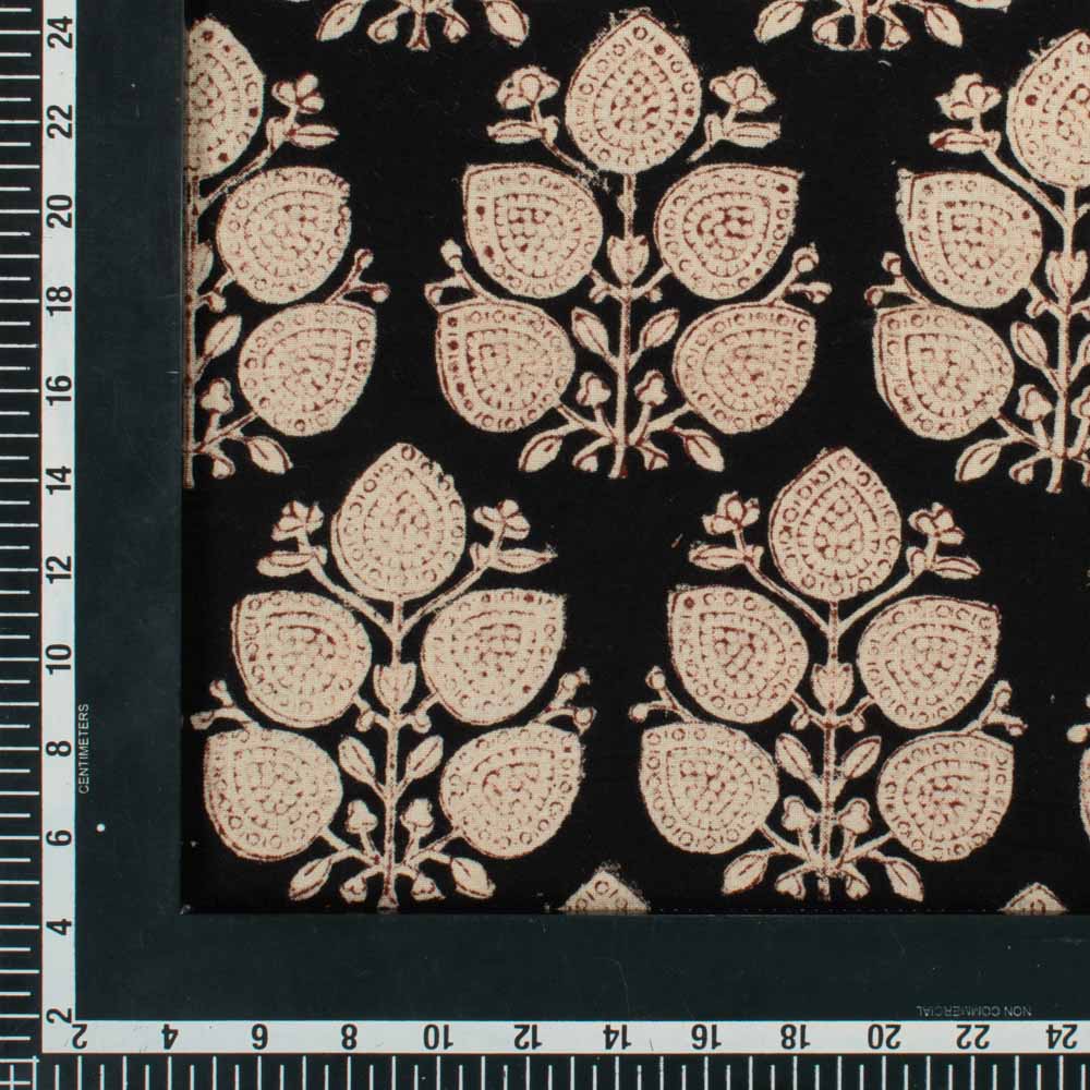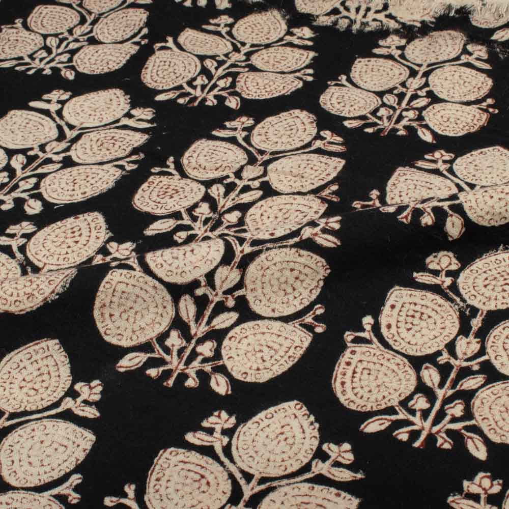The Natural marigold Cream With Iron Dust & Jaggery Black Block Print Pure Khadi Natural Dye 128 GSM Fabric is a beautiful blend of nature and craftsmanship, perfect for ethical designers. Handwoven with khadi warp and weft, this medium-weight fabric features a delicate floral block print in Cream and vibrant black, created with natural dyes. Soft, breathable, and durable, it is ideal for creating distinctive garments, accessories, and home textiles.