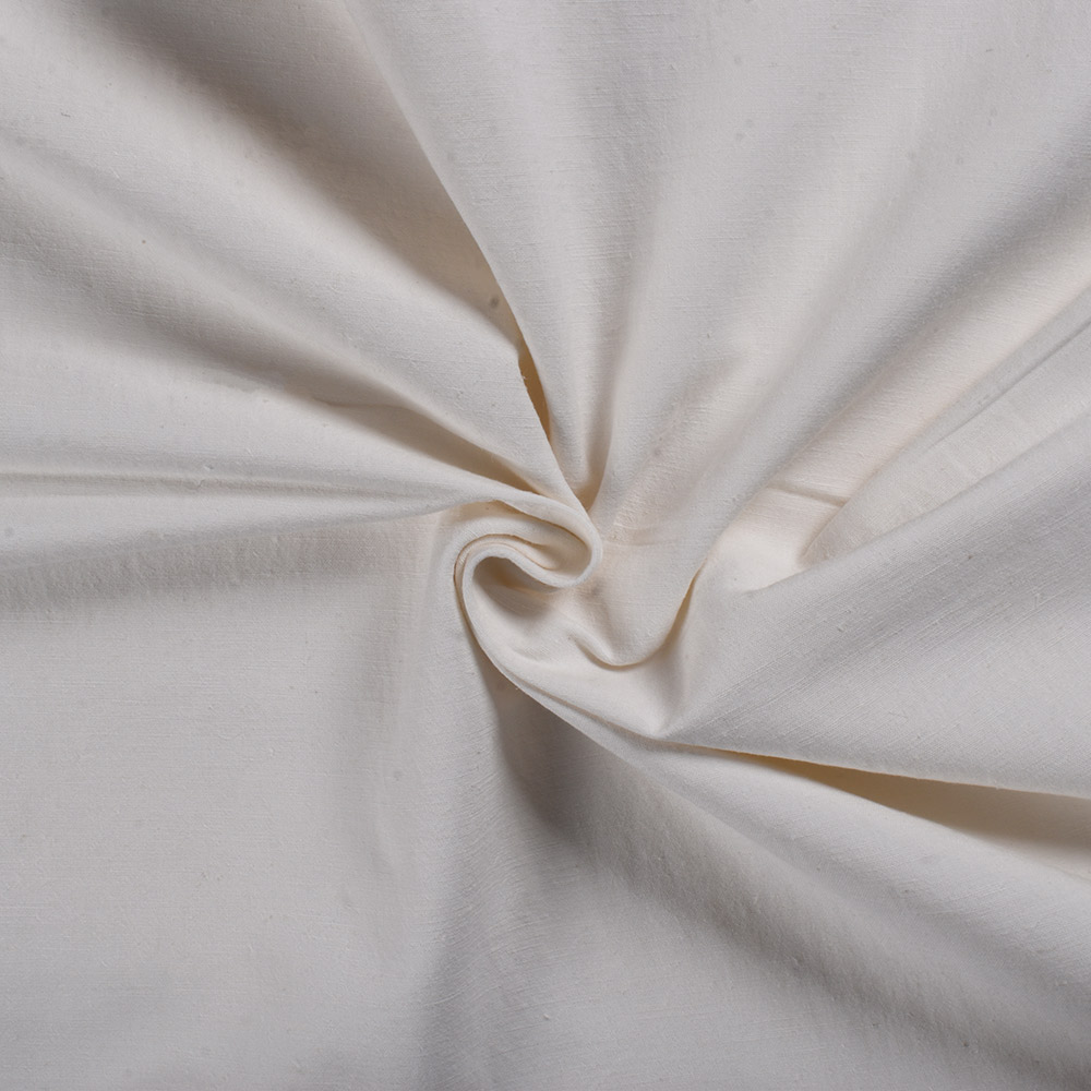 Elevate your sustainable creations with our Plain White Hemp & Cotton 195 GSM Handwoven Fabric, a masterpiece tailored for ethical designers. Immerse yourself in the purity of white, a color that symbolizes simplicity and sophistication. Crafted with a blend of cotton in the warp and hemp in the weft, this medium-weight fabric delivers luxurious softness, breathability, and durability. The plain pattern serves as a versatile canvas for your creative expressions, making it perfect for skirts, shirts, casual pants, and cozy quilts. Embrace sustainable luxury as you weave your eco-conscious designs into reality.