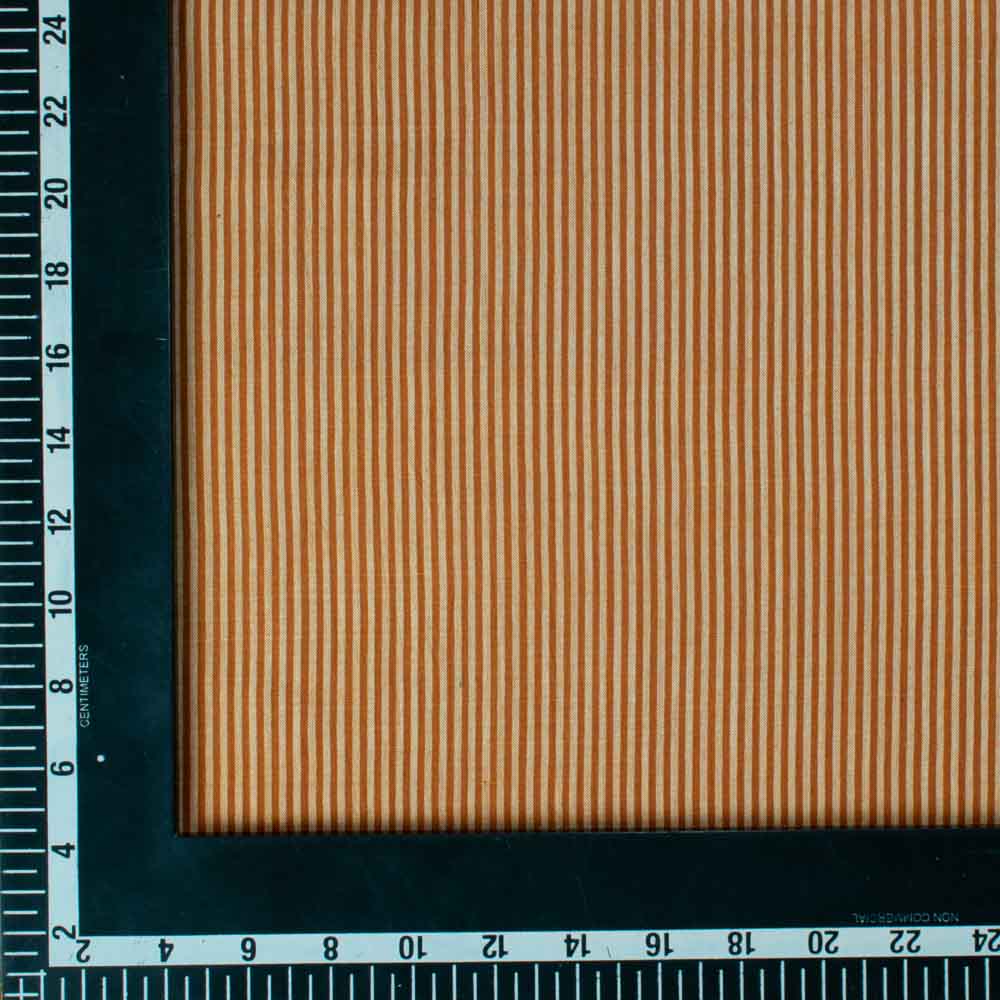 The Stripe Brown & White Pure Cotton 69 GSM Handwoven Fabric is a lightweight, breathable textile crafted for ethical and sustainable designers. Featuring elegant brown and white stripes, its soft texture and airy drape make it perfect for lightweight curtains, blouses, dresses, flowy scarves, and kidswear. Handwoven with pure cotton, this fabric blends artisanal craftsmanship with versatility, offering a refined yet natural charm for conscious fashion and home decor.