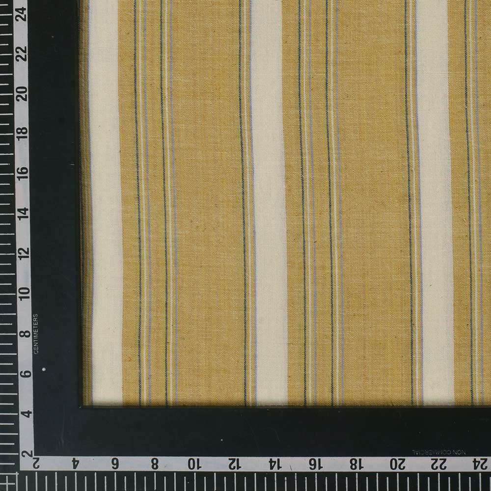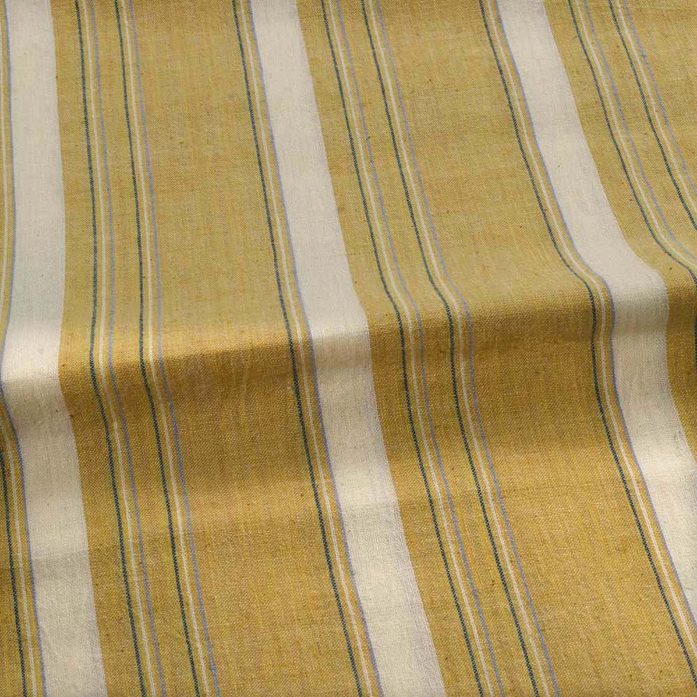 This stripe mustard yellow pure cotton 96 GSM handwoven fabric is a vibrant and versatile choice that reflects the charm of traditional weaving. Crafted with fine cotton yarns, it features alternating mustard and cream tones highlighted with subtle colored detailing, giving it a timeless appeal.