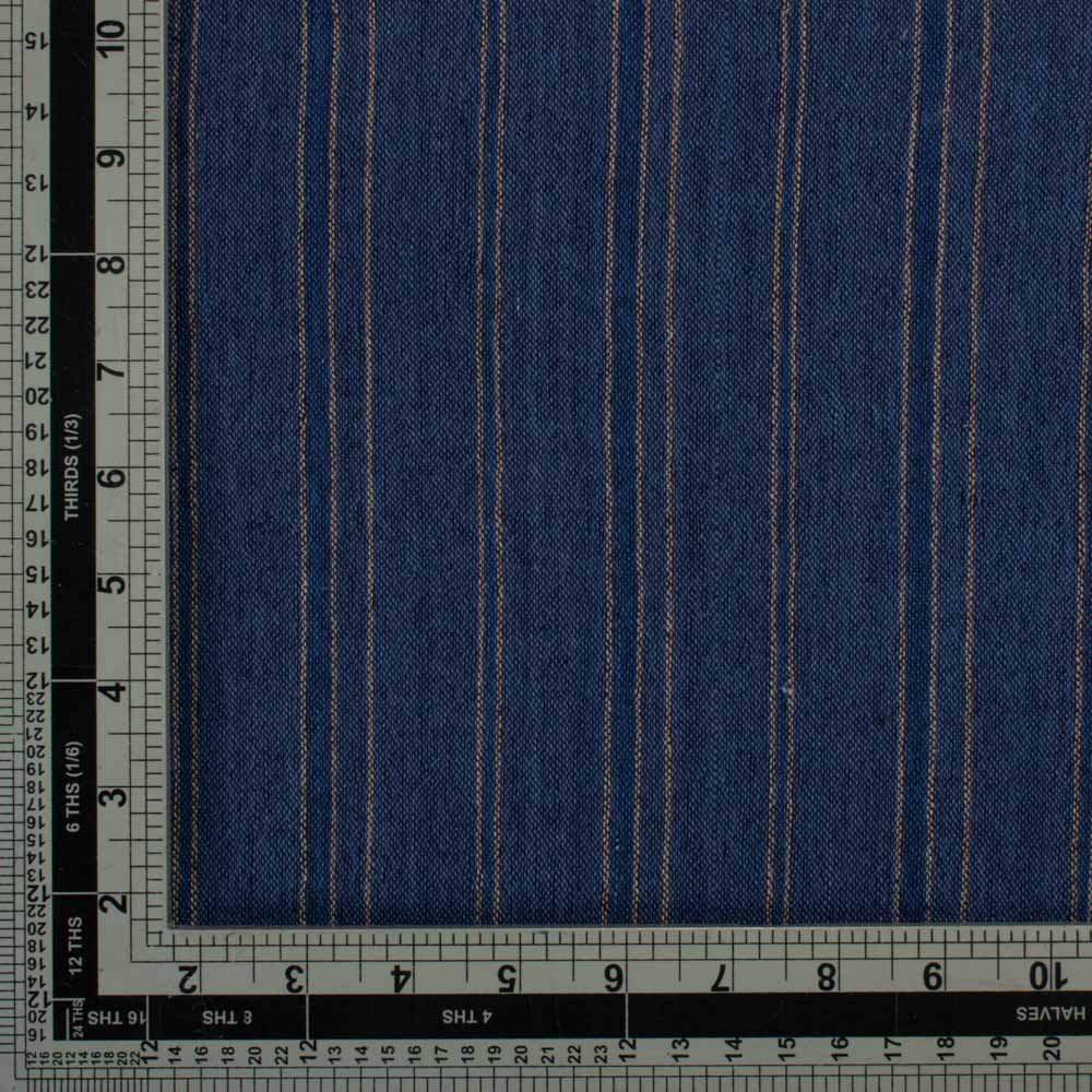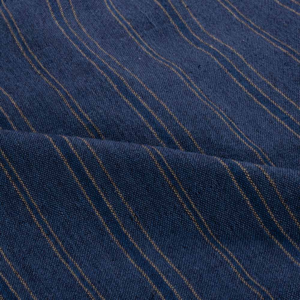 Our Stripe Navy Yellow Pure Cotton 200 GSM Handwoven Fabric is a perfect choice for ethical designers seeking sustainable luxury. Crafted with cotton warp and weft, this lightweight fabric features a timeless stripe pattern and a soft, breathable, and durable finish. Its versatility shines in applications like lightweight curtains, blouses, dresses, flowy scarves, and kidswear. Ideal for creating chic, comfortable designs with a conscious edge, this fabric embodies quality and sustainability in every thread.
