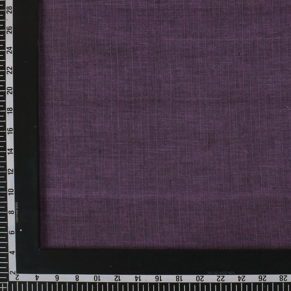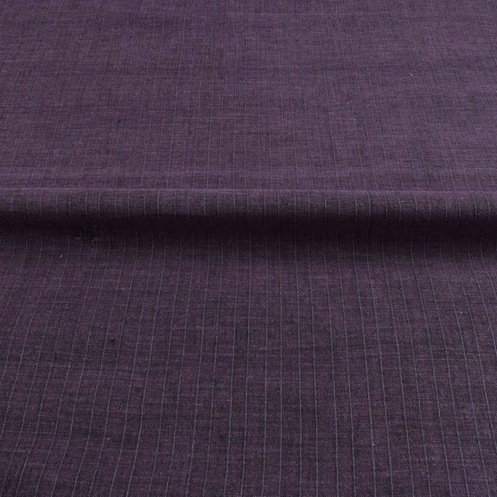 Woven from 100% natural cotton, this 74 GSM handwoven textile fabric features fine vertical stripes over a deep plum base. The fabric is lightweight yet structured, with a soft texture and breathable finish—ideal for daily wear in warmer seasons. Free from synthetic fibers and chemical treatments, it's hypoallergenic, biodegradable, and designed for comfort.