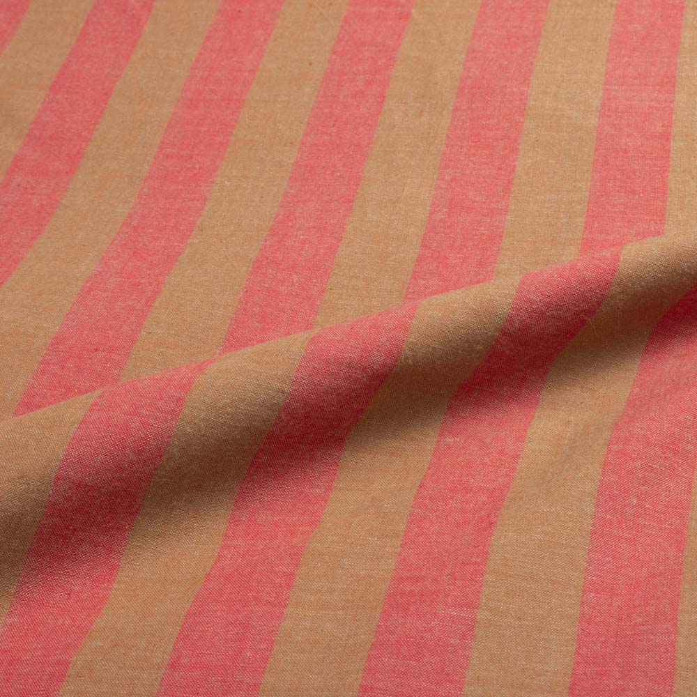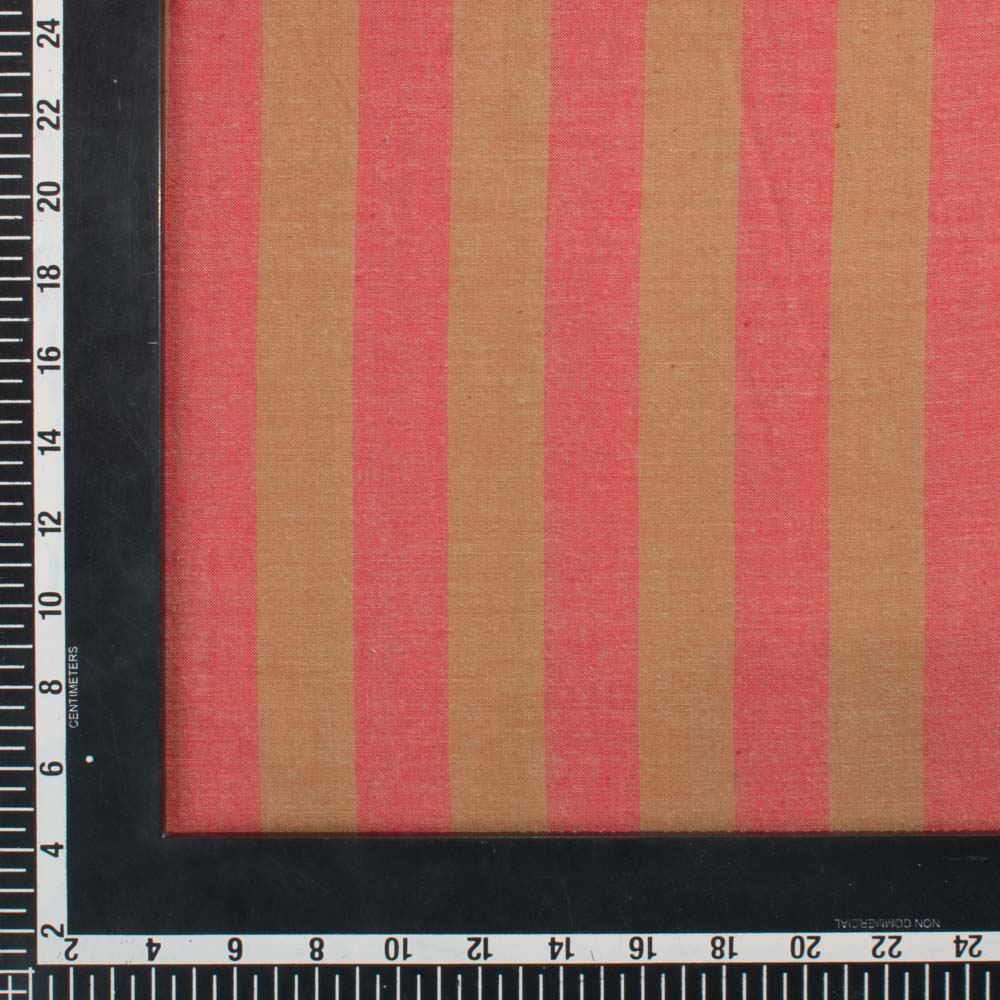 This stripe fabric in pure cotton is meticulously handwoven, showcasing alternating bands of deep red and earthy brown that create a bold yet timeless aesthetic. Made from 100% natural cotton yarns, its ultra-lightweight 70 GSM texture makes it soft, breathable, and comfortable—perfect for warm climates and effortless draping. The airy construction lends itself beautifully to summer dresses, casual shirts, blouses, scarves, kidswear, and it also works wonderfully in home décor pieces like sheer curtains or cushion covers.