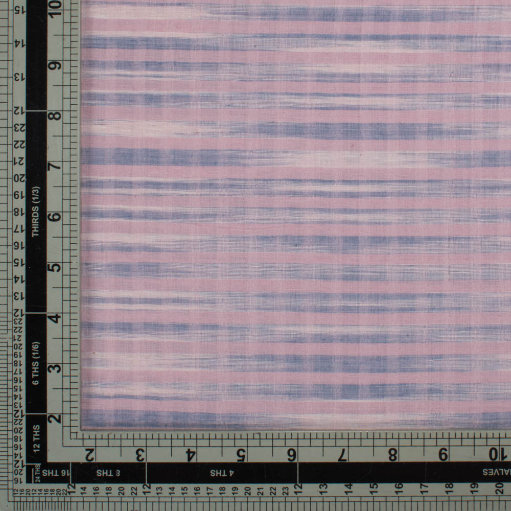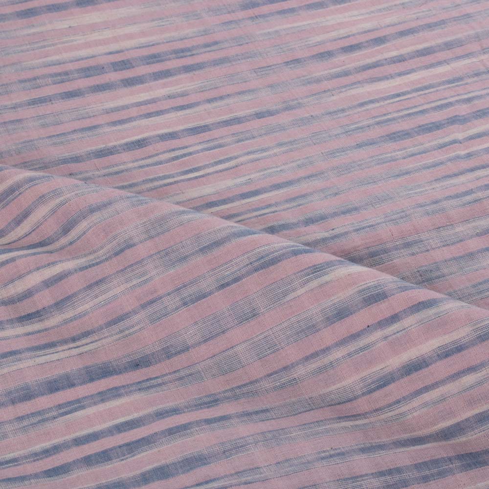 Designed for ethical and sustainable brands, this Tie Dye Fabric in White Blue & Pink features handwoven and Pure cotton weft with a subtle stripe pattern. Lightweight at 70 GSM, its soft, breathable, and durable texture makes it ideal for blouses, dresses, flowy scarves, kidswear, and light curtains. An elegant blend of artisanal craft and timeless functionality for conscious design.