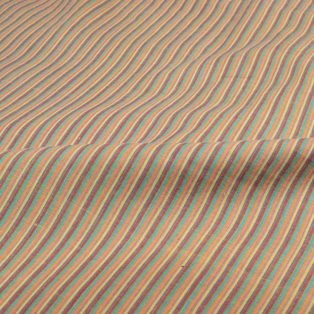 Stripe Yellow Multicolour Pure Cotton 70 GSM Handwoven Fabric