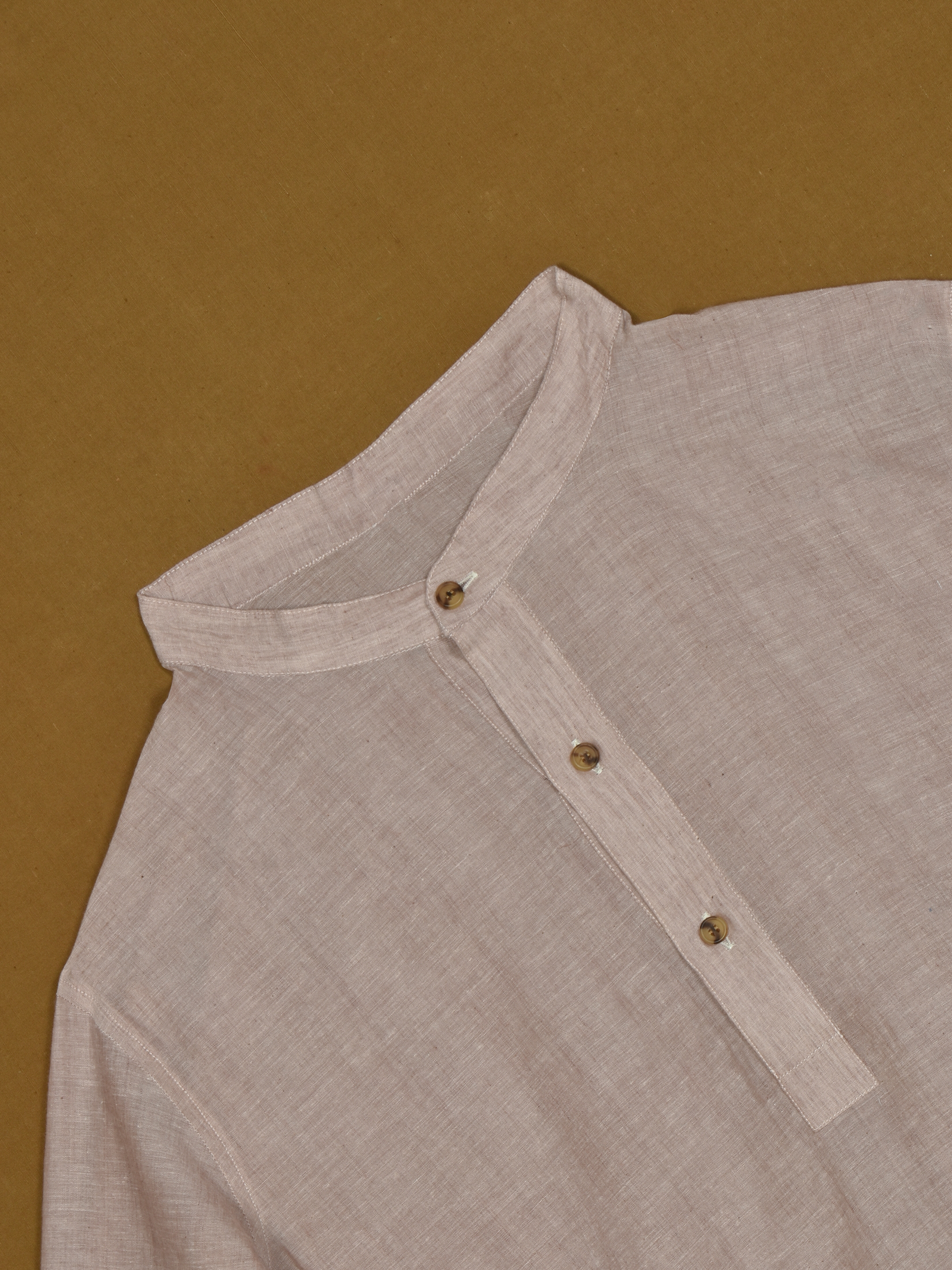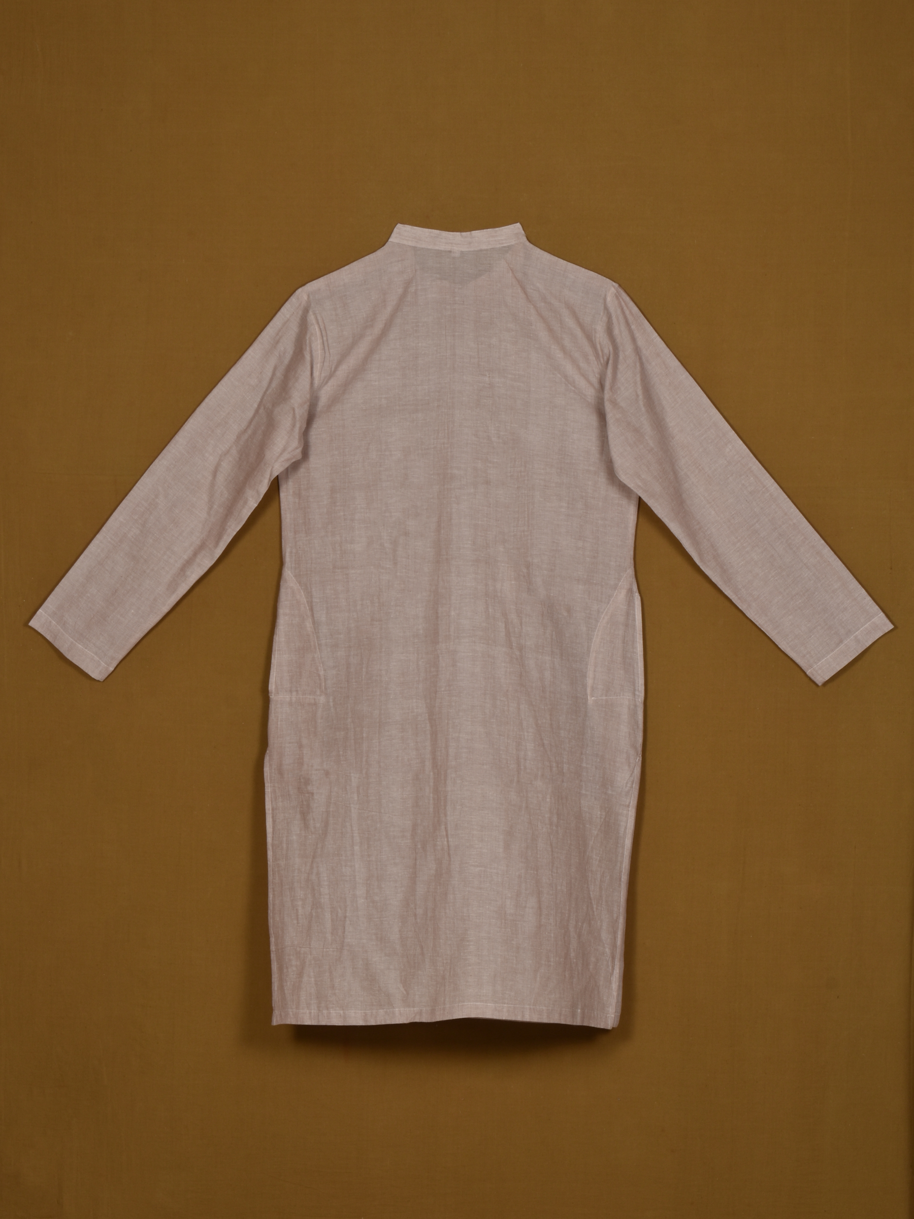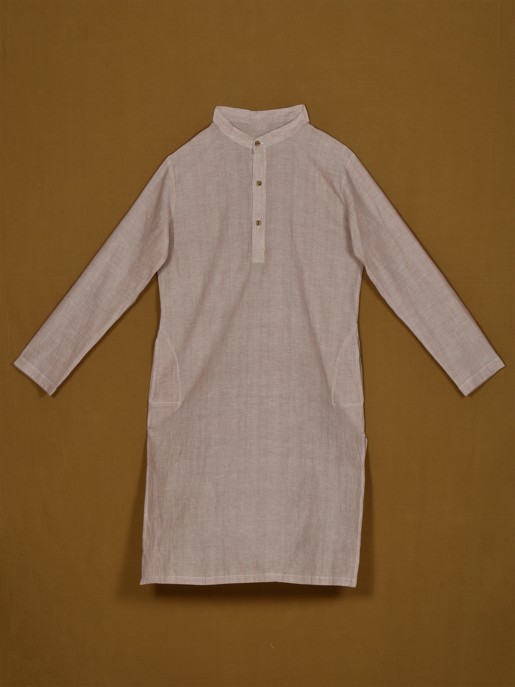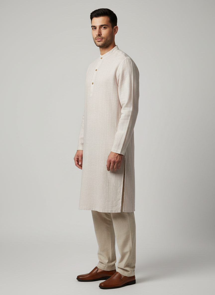 A timeless men’s kurta designed with clean lines and understated elegance. Featuring a smart band collar, a functional popover placket, and full sleeves, this kurta blends tradition with contemporary minimalism. Crafted in breathable, handwoven cotton, it ensures year-round comfort while reflecting artisanal craftsmanship. Fully customizable in fabric and detailing, it’s perfect for everyday wear, festive occasions, or designer collections with a sustainable edge.