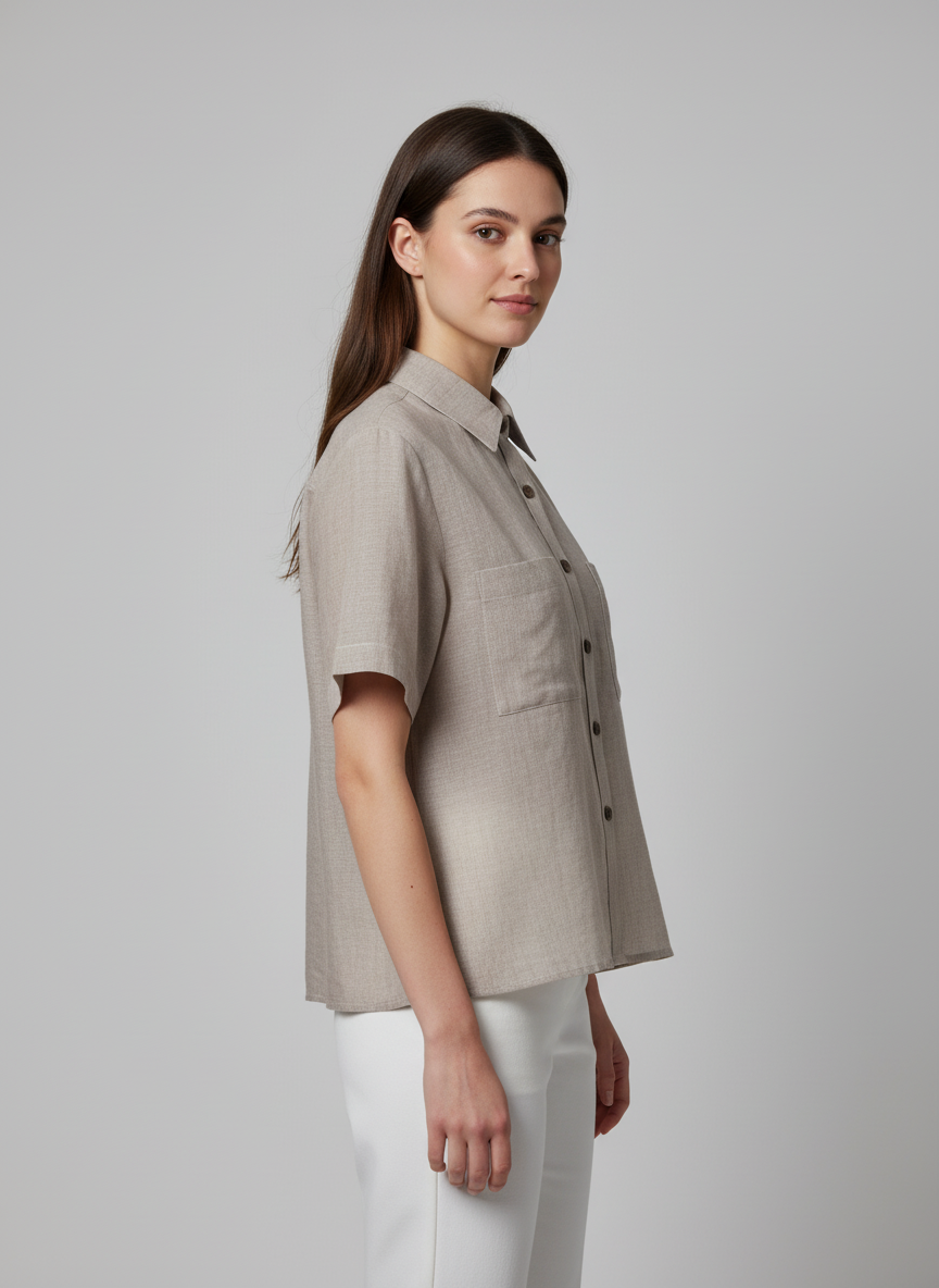 Casual and chic, this Crop Shirt redefines the classic women’s shirt with a modern twist. Featuring short sleeves, a structured collar, and a button-down center placket, it’s enhanced with double side pockets for functionality and style. Perfect for pairing with high-waist bottoms for everyday wear or casual outings.