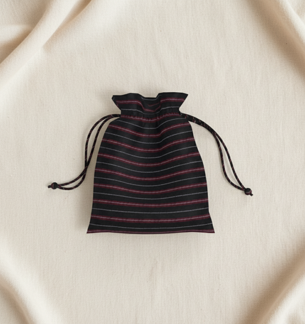 Designed with care and precision, this compact pouch features a smooth drawstring closure and spacious inner compartment and is available in a range of signature Anuprerna fabrics, including khadi cottons, silks, and textured weaves.