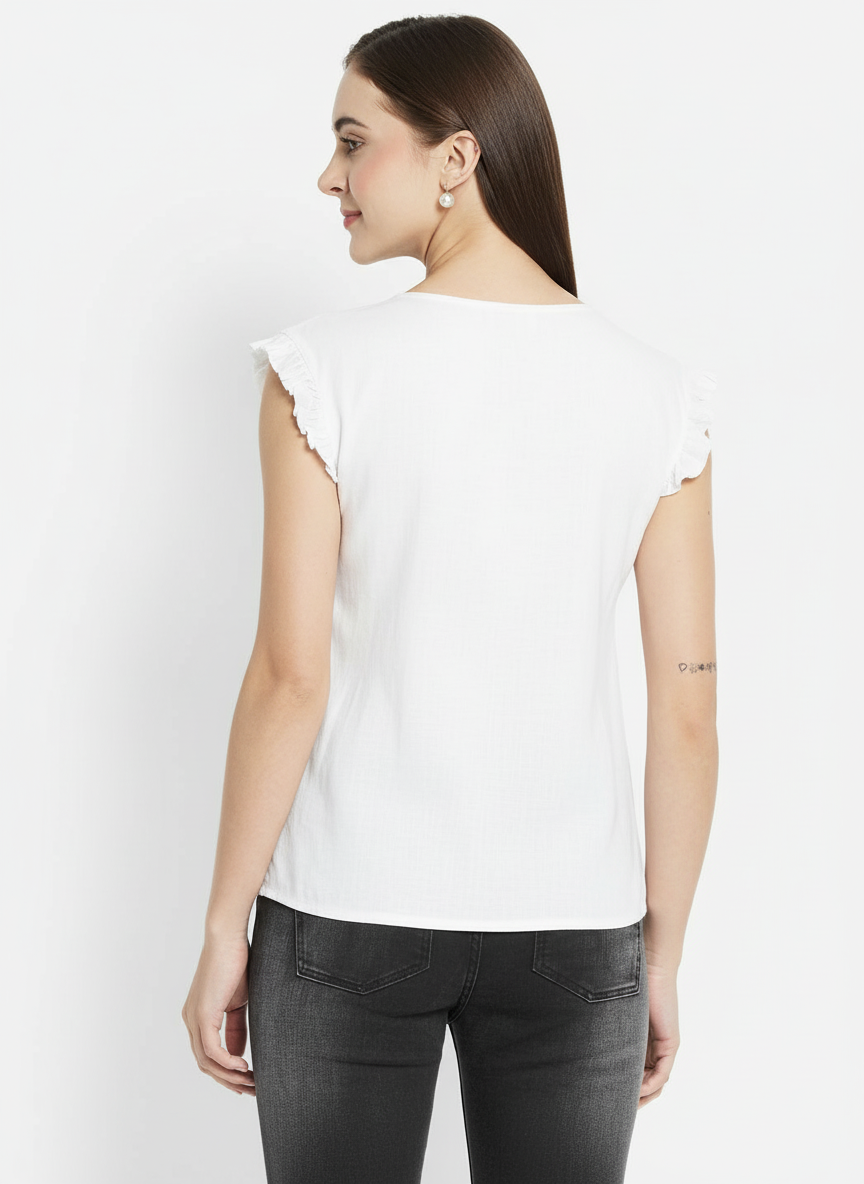 White women’s summer top with frilled detailing