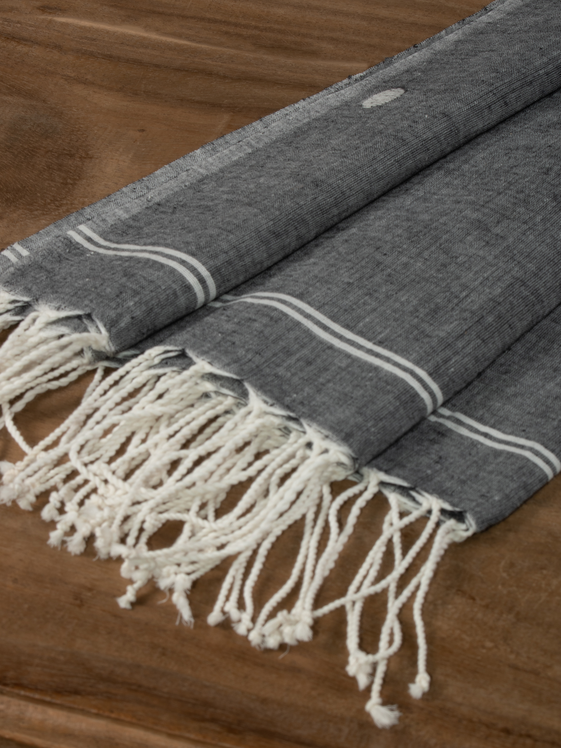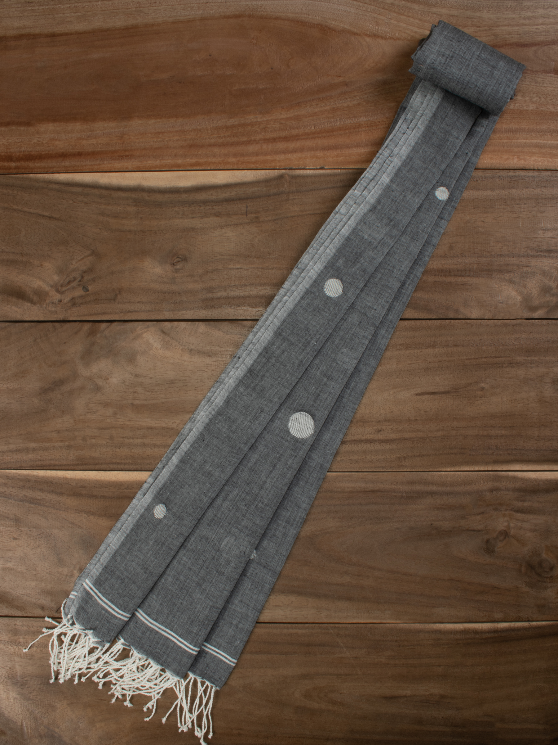 Handwoven grey scarf with subtle Jamdani dotted motifs
