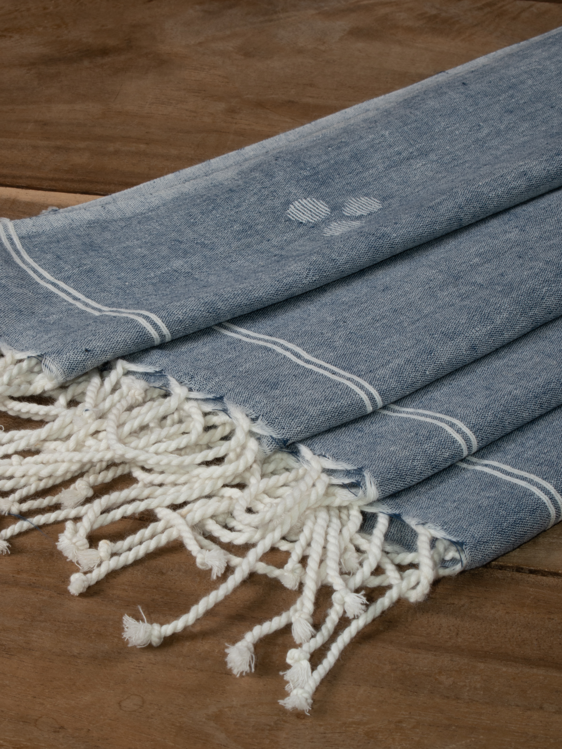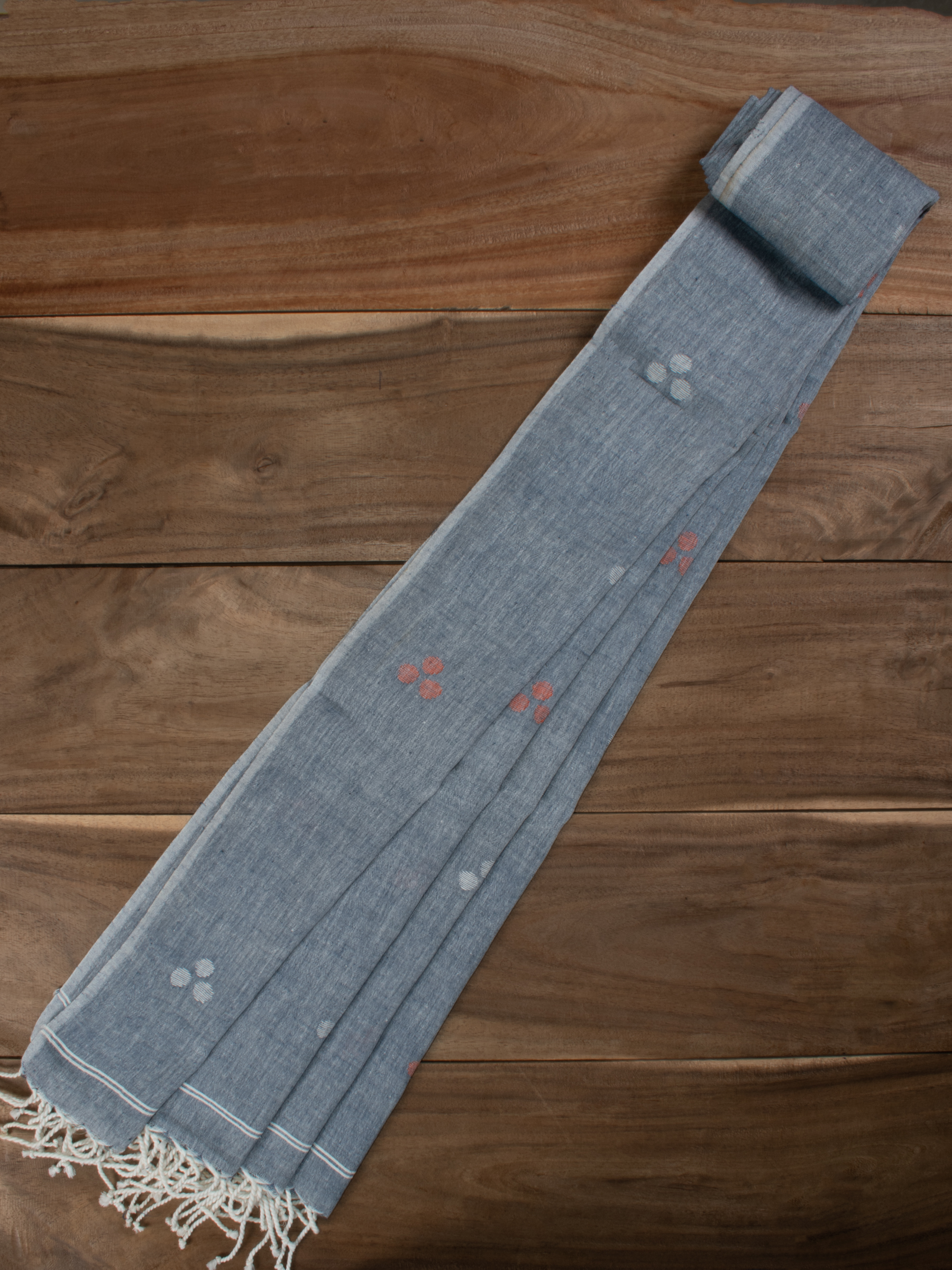 Handwoven greyish blue scarf with Jamdani floral motifs