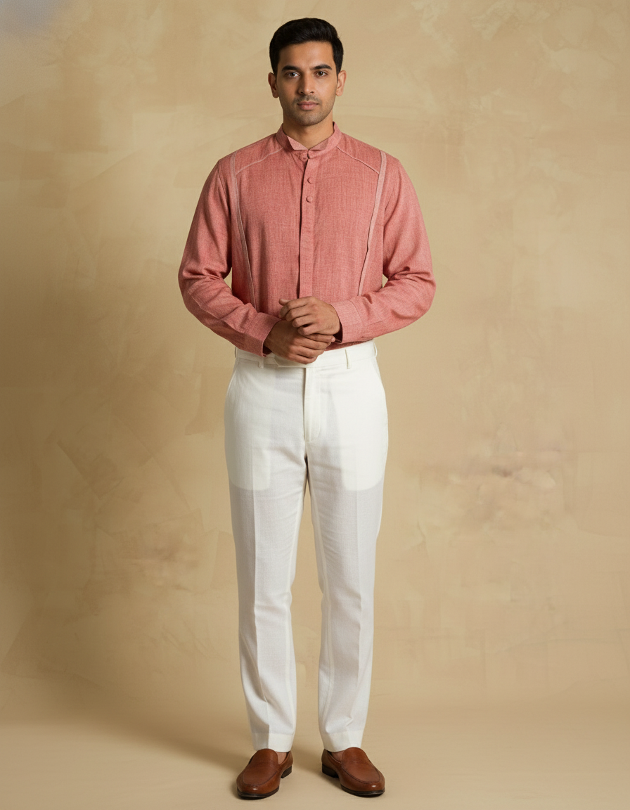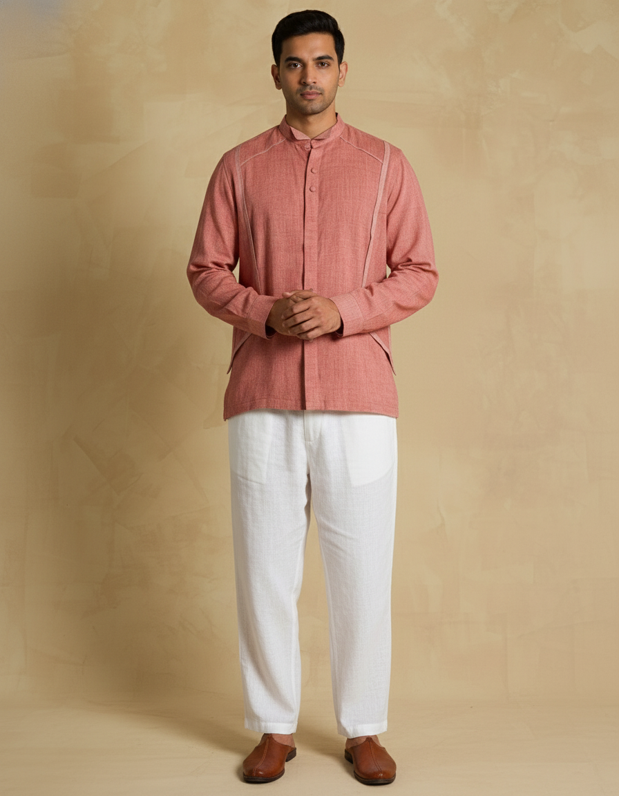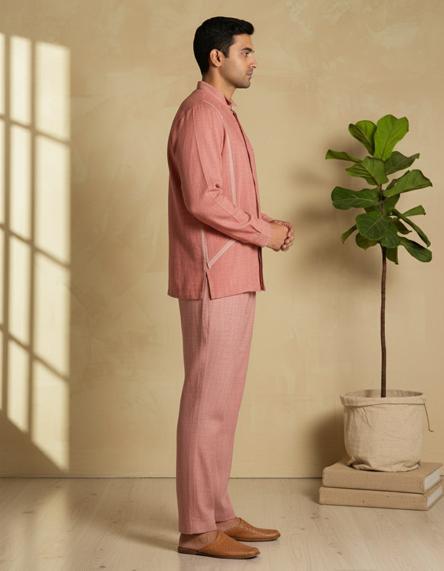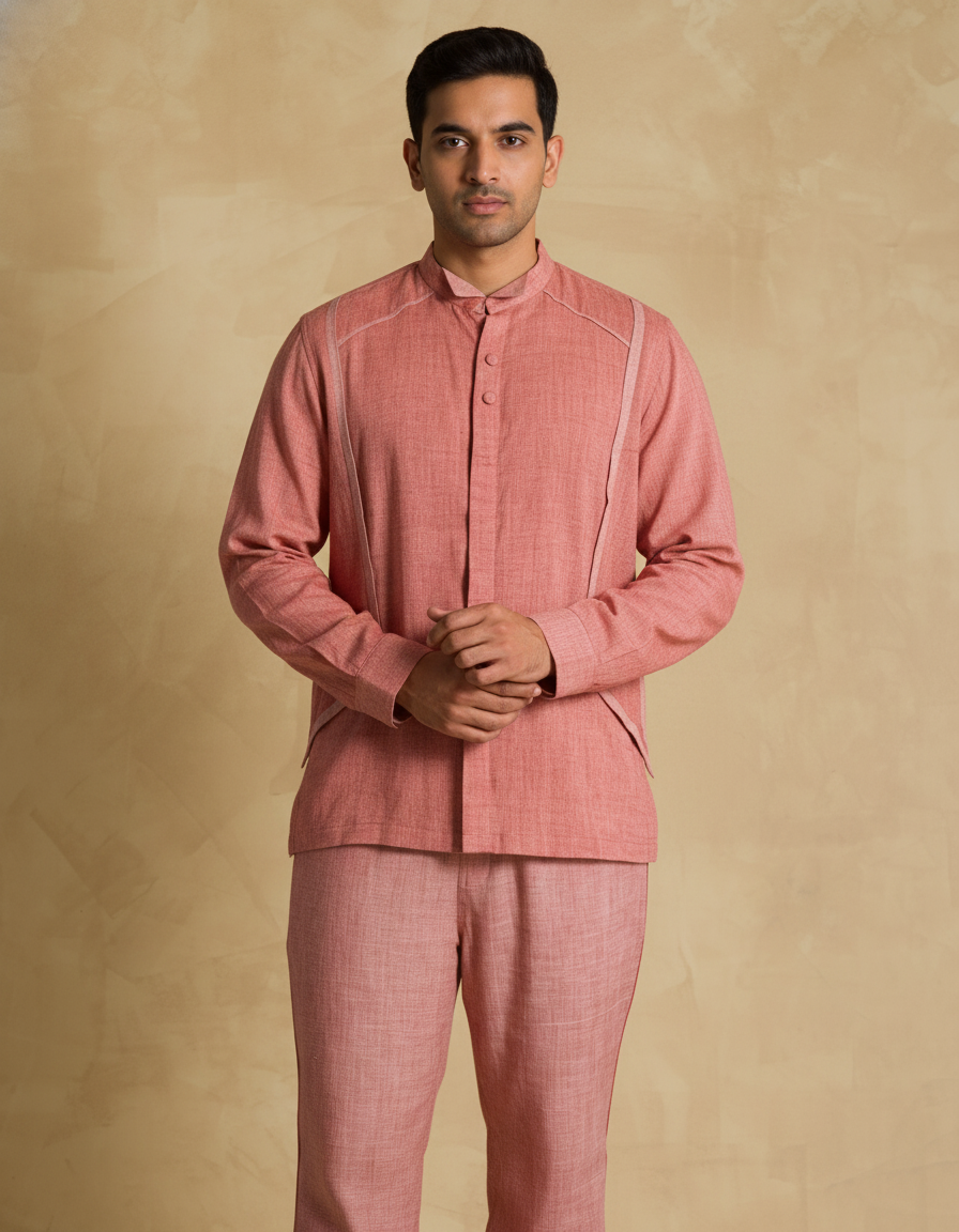 Chambray Pink Khadi Cotton 92 GSM Handwoven Fabric
