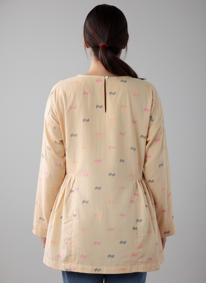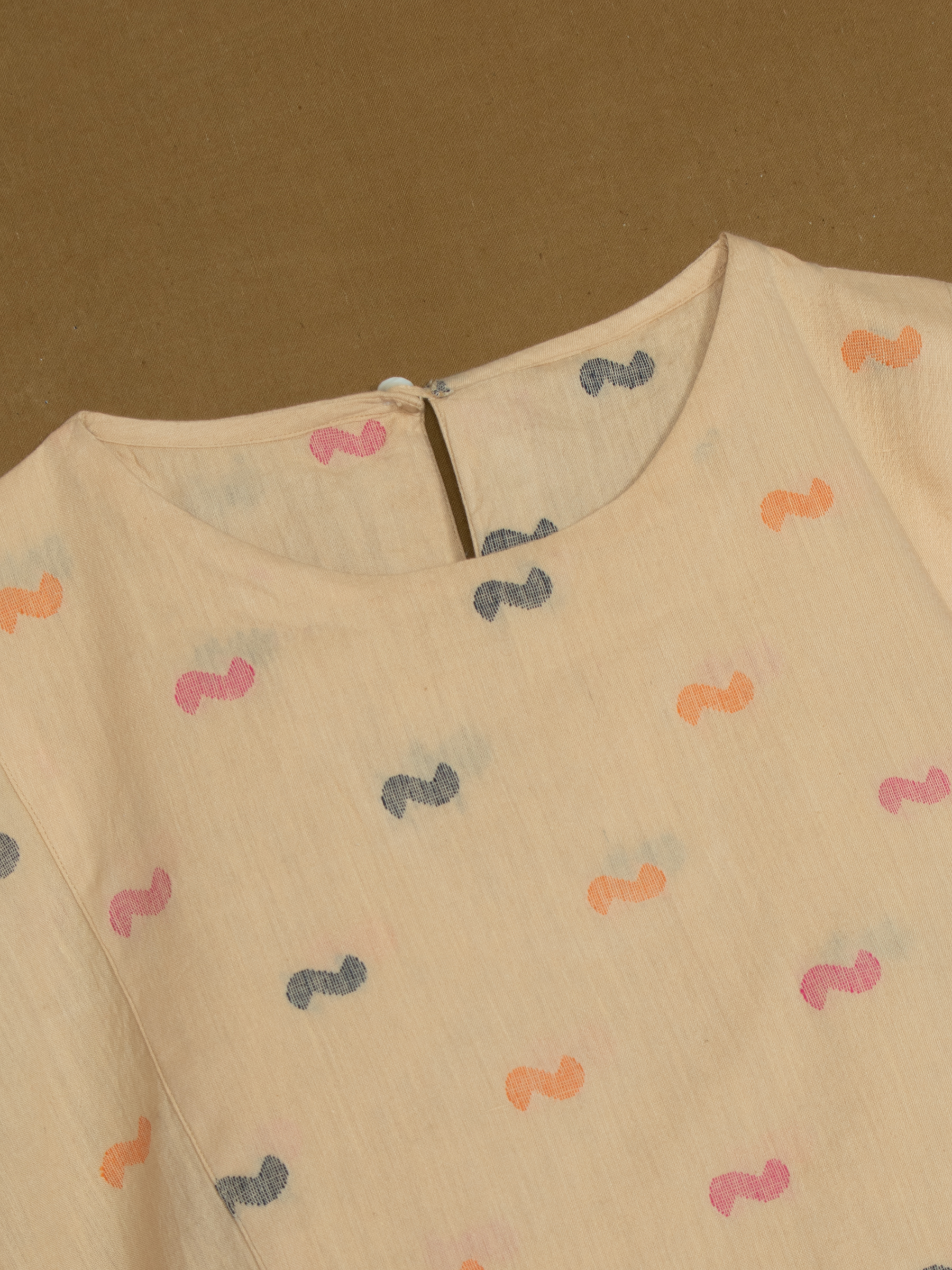 Lightweight and graceful, the Jamdani Breeze women's summer top is a perfect blend of tradition and modern ease. Handwoven with delicate Jamdani motifs, it features long sleeves and a relaxed fit that ensures comfort while adding artisanal charm to everyday wear. Ideal for casual outings or layering, this piece brings effortless elegance to your summer wardrobe.