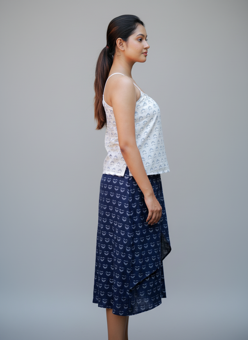 Minimalist and breezy, this handwoven Jamdani piece adds a heritage twist to stylish tops for women. Designed with delicate straps and subtle woven motifs, it’s the perfect summer essential—whether layered under jackets or worn solo for effortless charm. Light, breathable, and artisan-made, it blends tradition with everyday wearability.