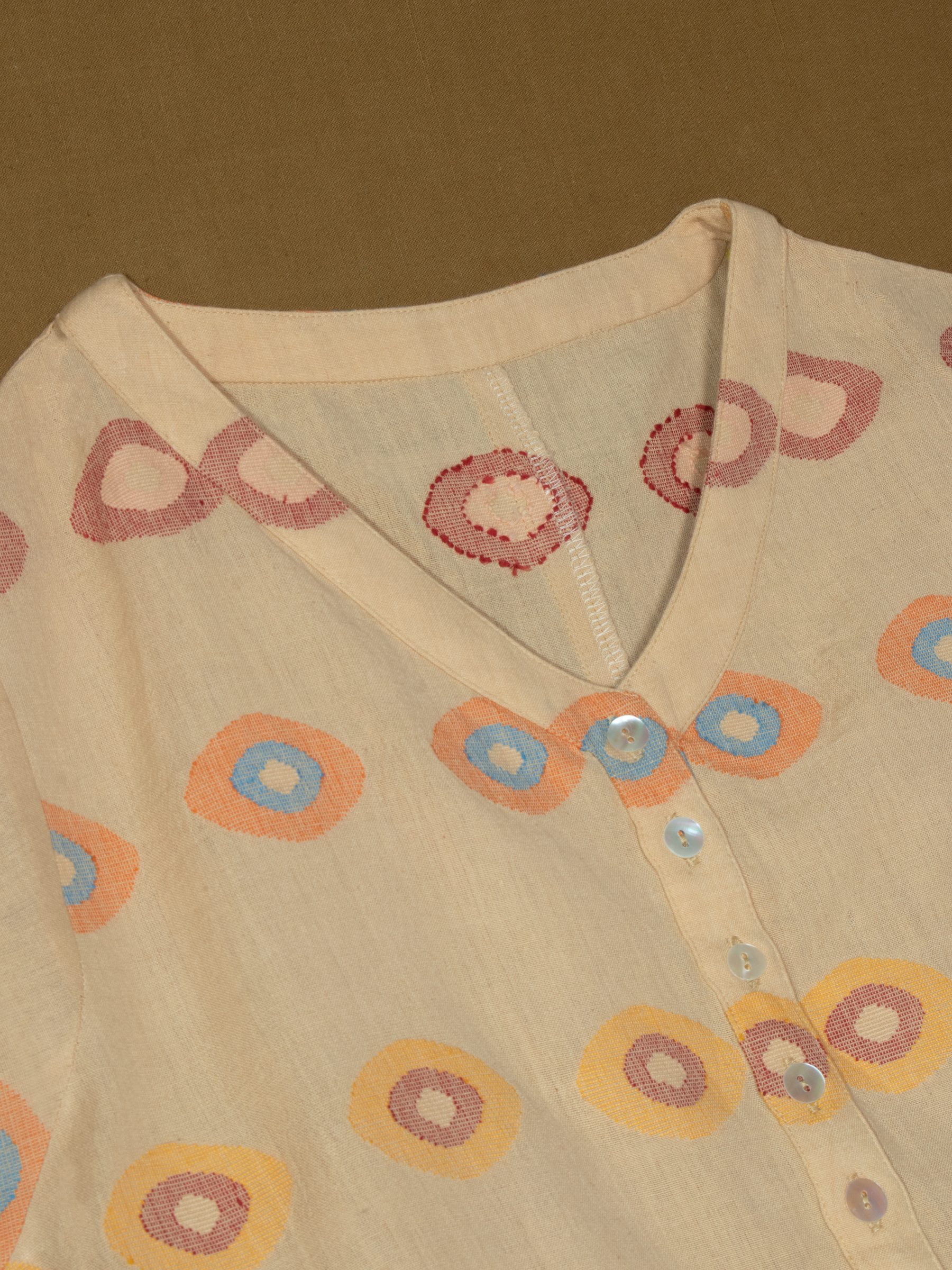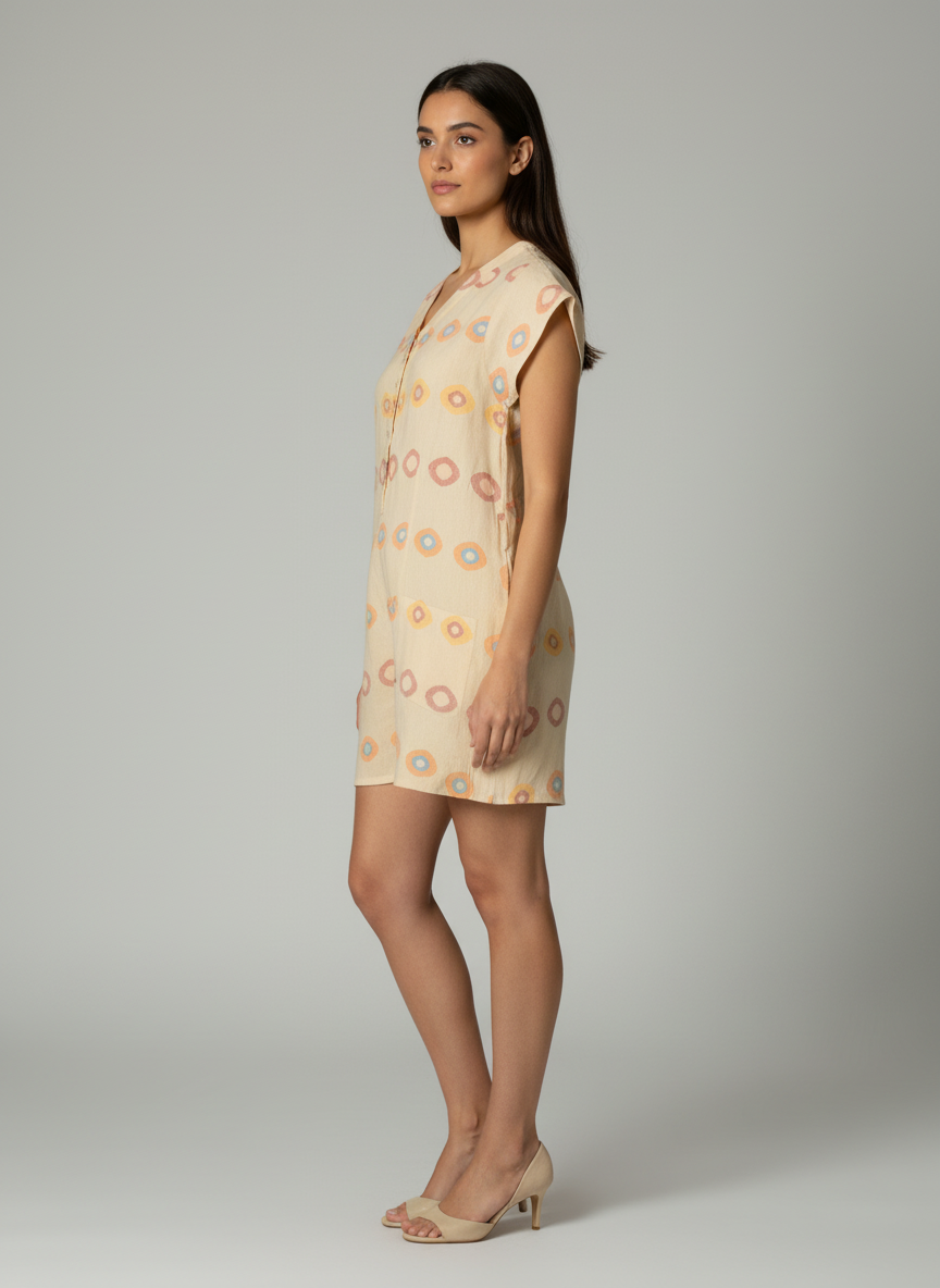 This handwoven Jamdani romper in soft beige is a blend of playful charm and artisanal craftsmanship. Featuring delicate woven patterns and a buttoned front, it offers a breathable, lightweight, and durable finish—perfect for conscious fashion lovers. Fully customizable in fabric and design, this versatile piece brings comfort and effortless style to both casual days and special occasions.