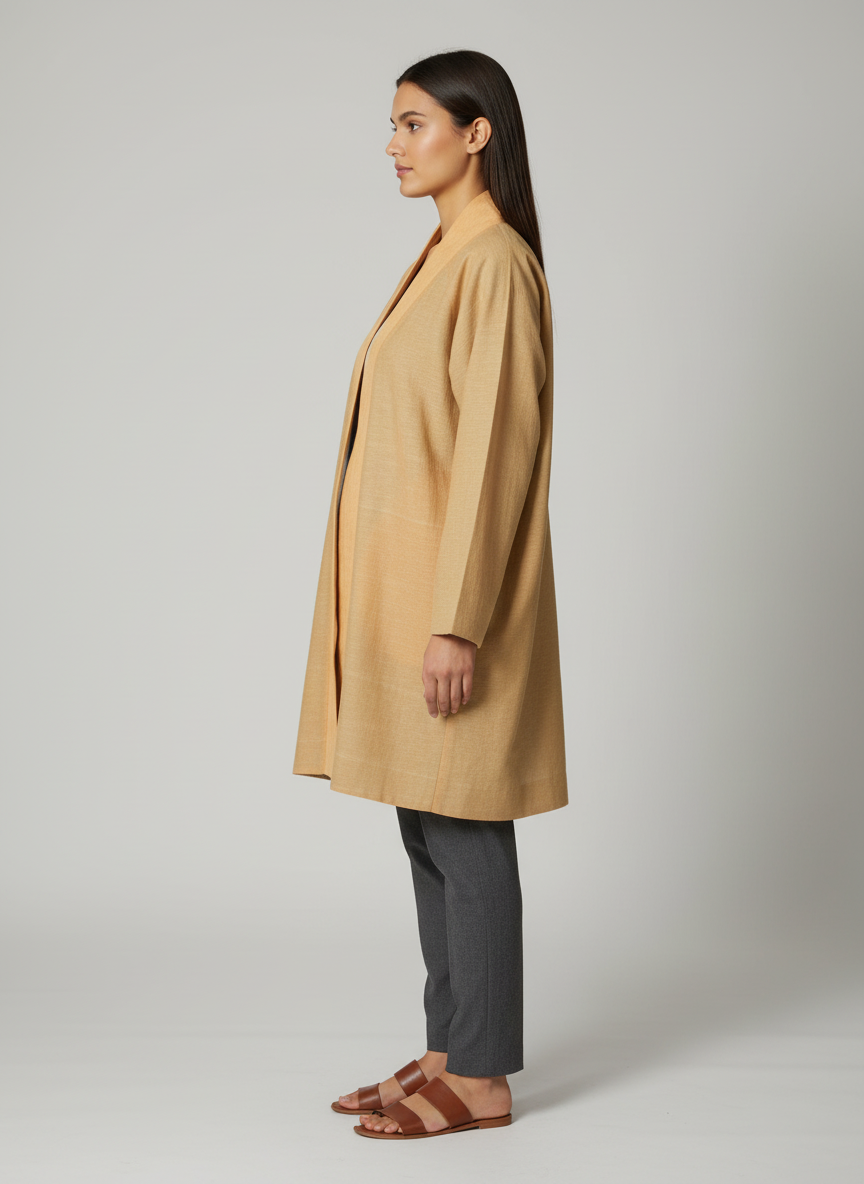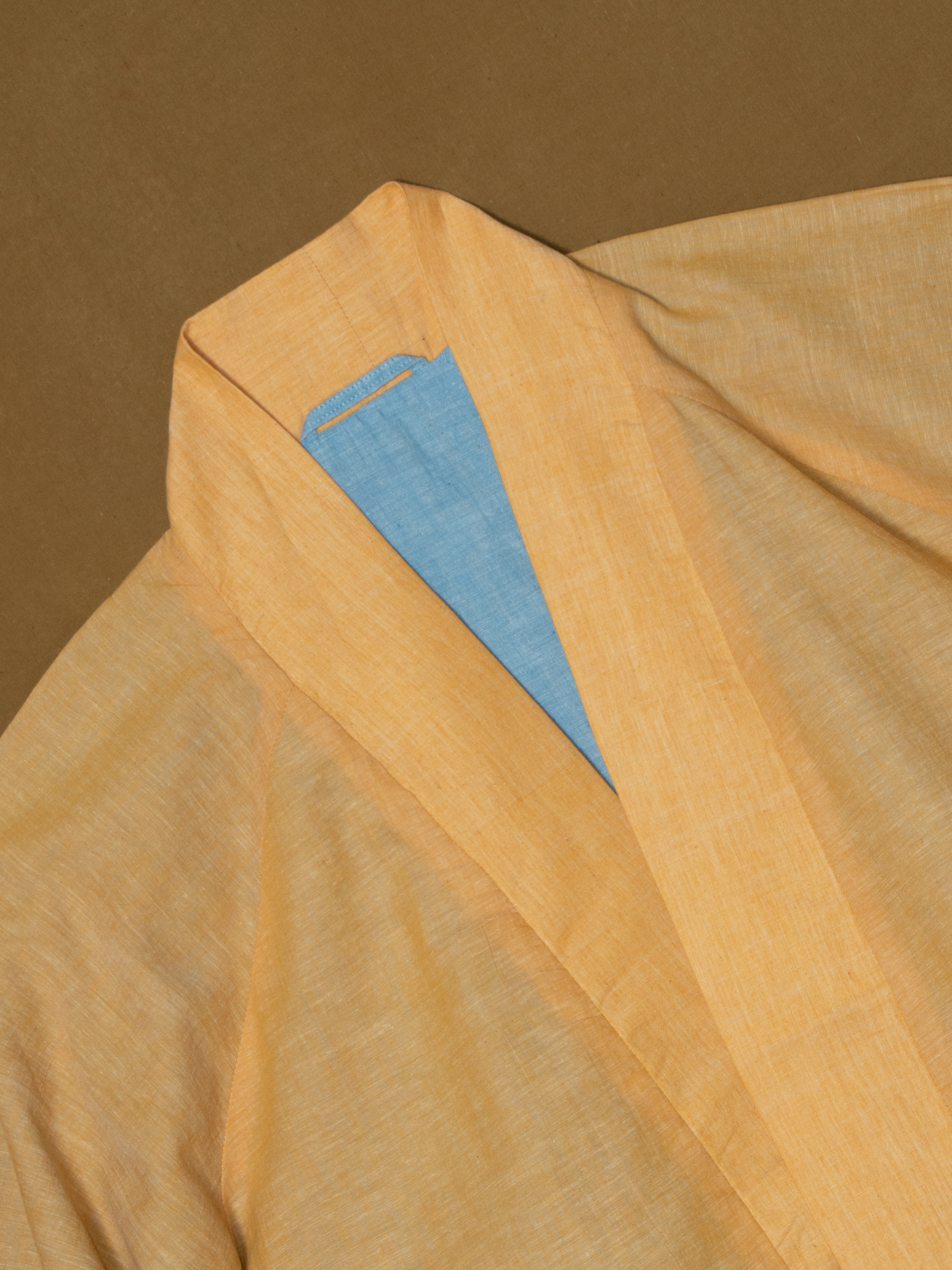 A contemporary unisex coat inspired by classic kimono styling, this piece brings together relaxed structure and artisanal charm. Handcrafted from breathable, durable cotton with clean lines and an open front, it is perfect for layering across seasons. Fully customizable in fabric and finish, it reflects a balance of tradition and modernity for conscious wardrobes.