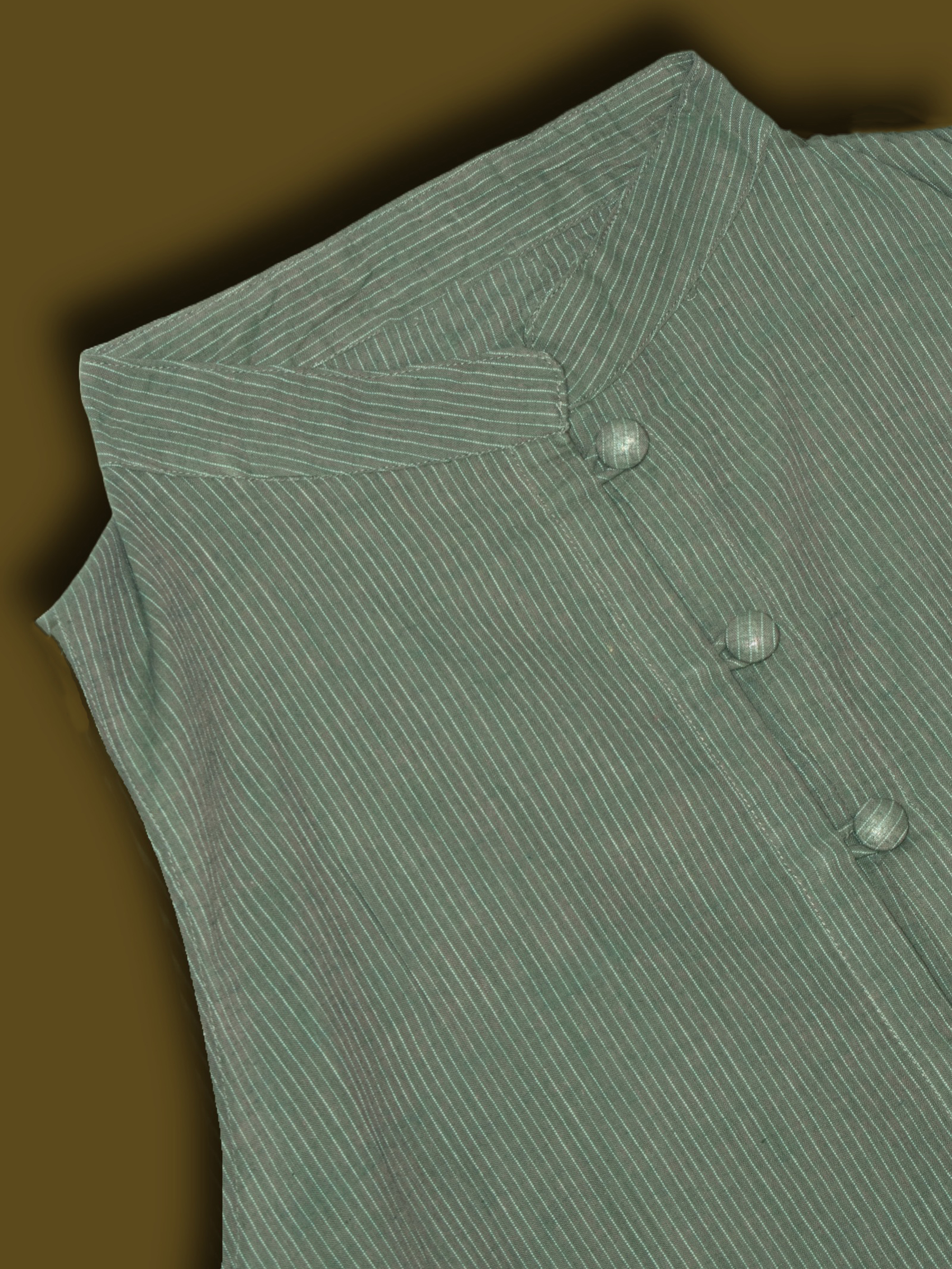 Muted green shade with mandarin collar and button-down front.